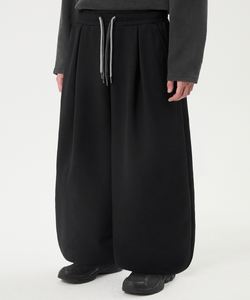 커브드 사이드 핀턱 벌룬 스웨트팬츠 GLP-650_블랙