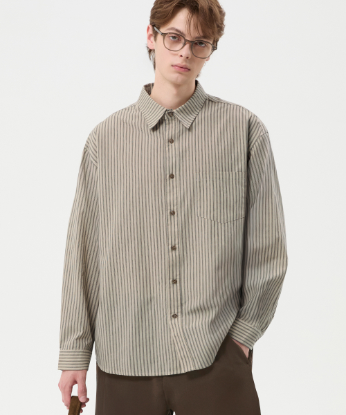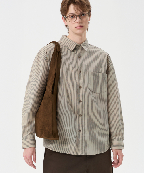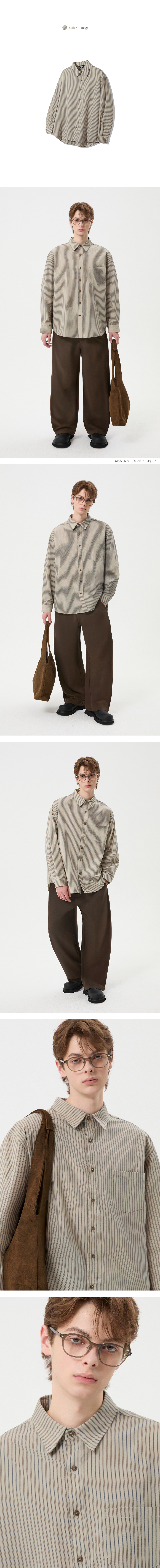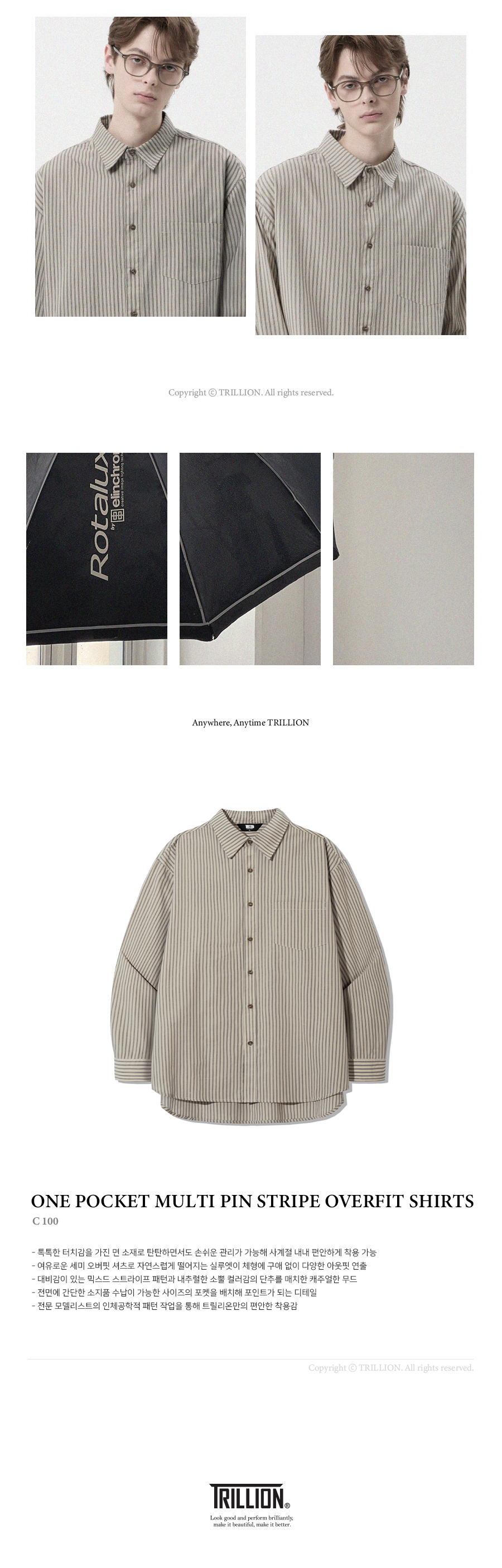 원 포켓 멀티 핀 오버핏 셔츠_베이지