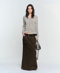 DOUBLE POCKET COTTON MAXI SKIRT, BROWN