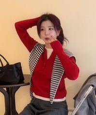 레이어드 헨리넥 시그니처 케이블 니트 (레드)