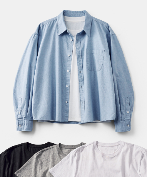 [2PACK] 에센셜 크롭 셔츠 스카이블루 (+솔리드 크롭 티셔츠 증정)