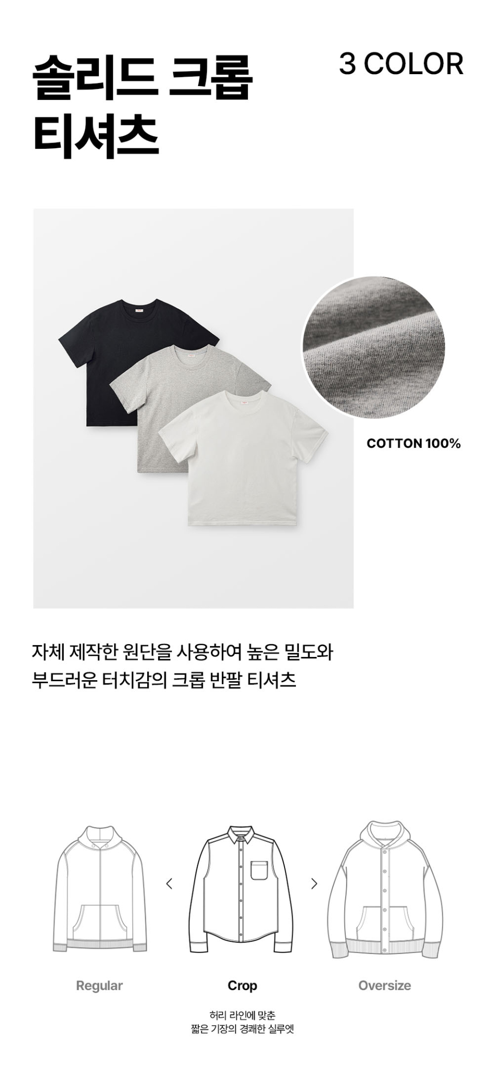 [기획] (코튼16수) 솔리드 크롭 티셔츠 - 3 COLOR
