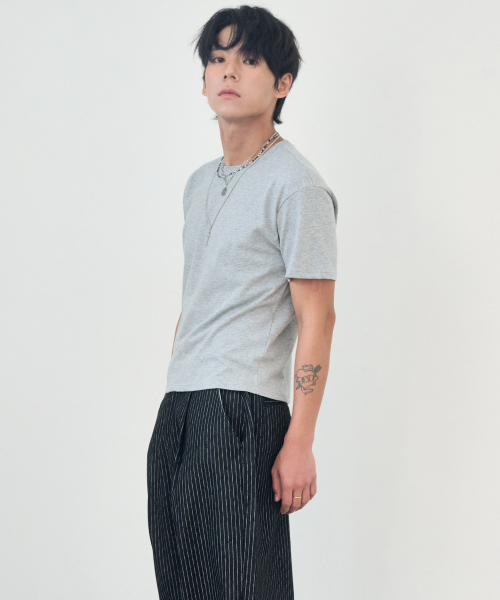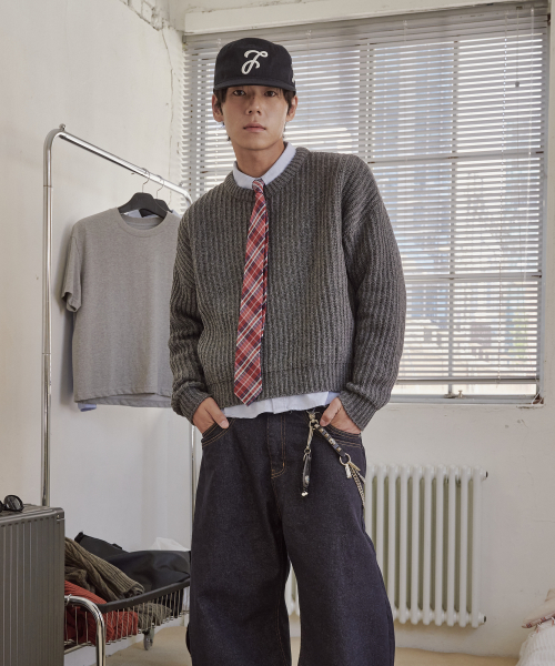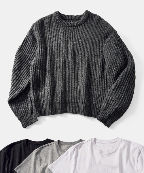[2PACK] 울 크롭 니트 연차콜 (+솔리드 크롭 티셔츠 증정)