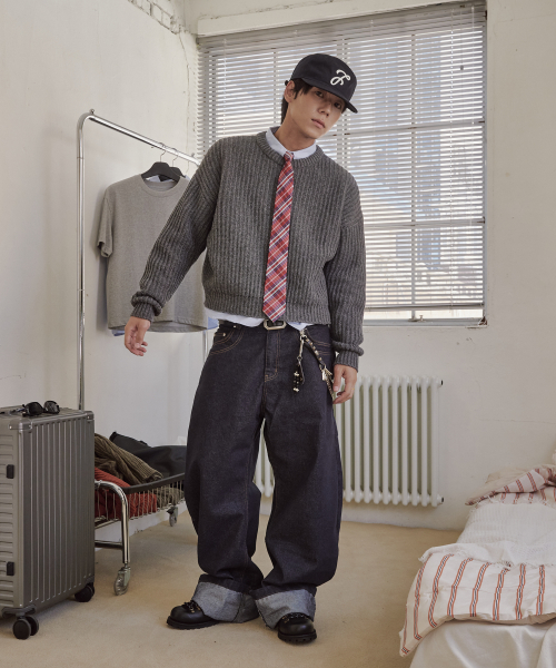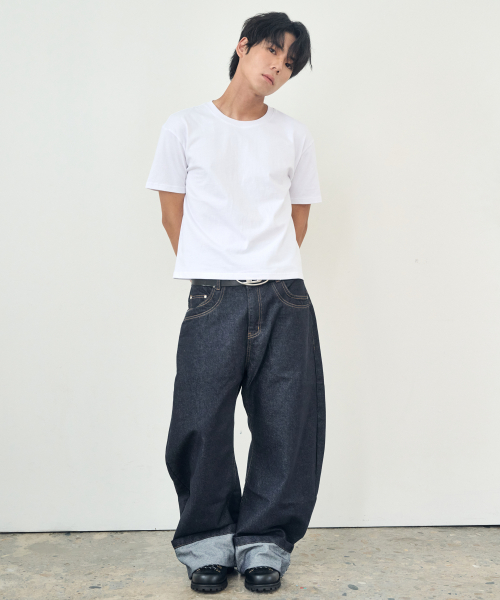 블랙 워시드 벌룬 슈퍼 와이드 데님 팬츠