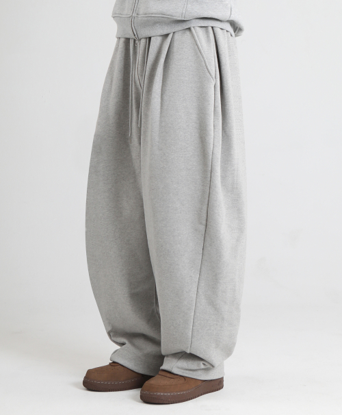 커브드 원턱 벌룬핏 스웨트 팬츠 [그레이]