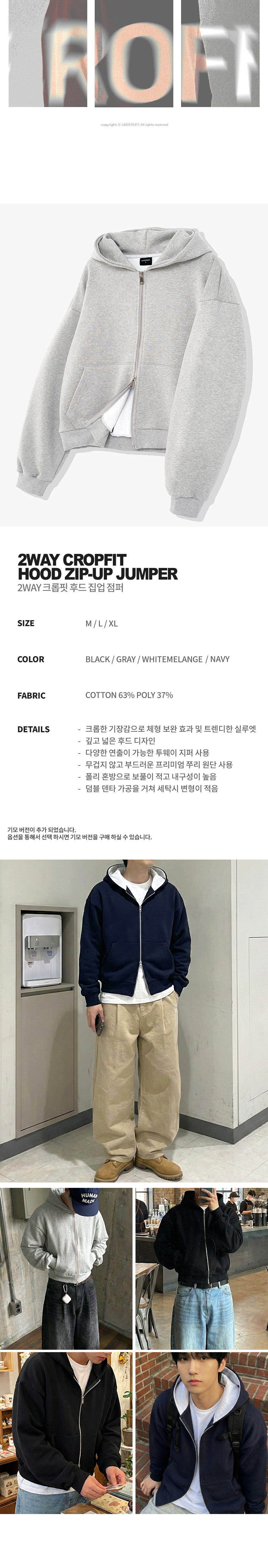 2way 크롭핏 후드 집업 점퍼 그레이 기모선택