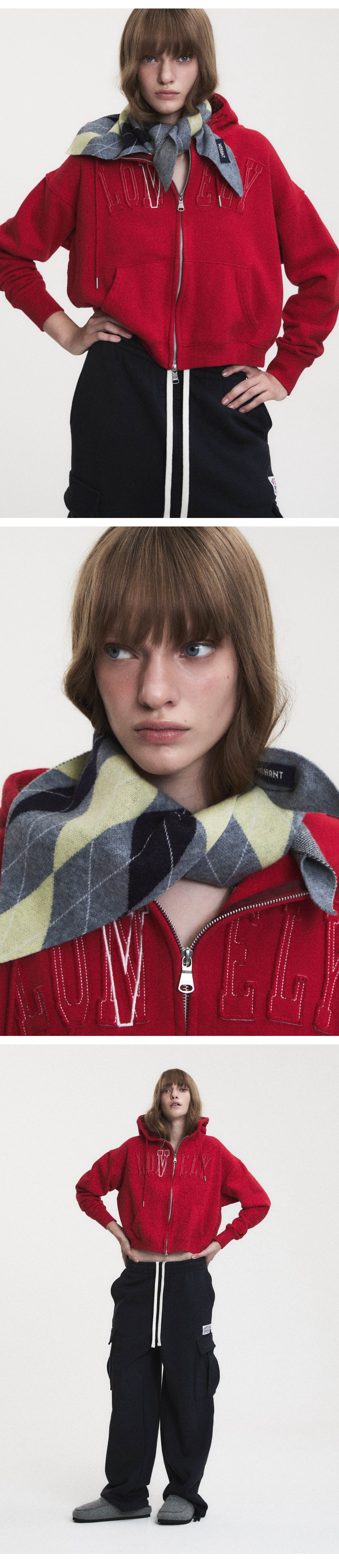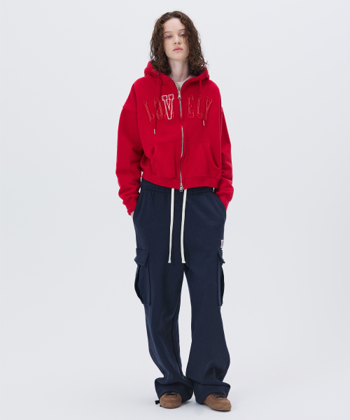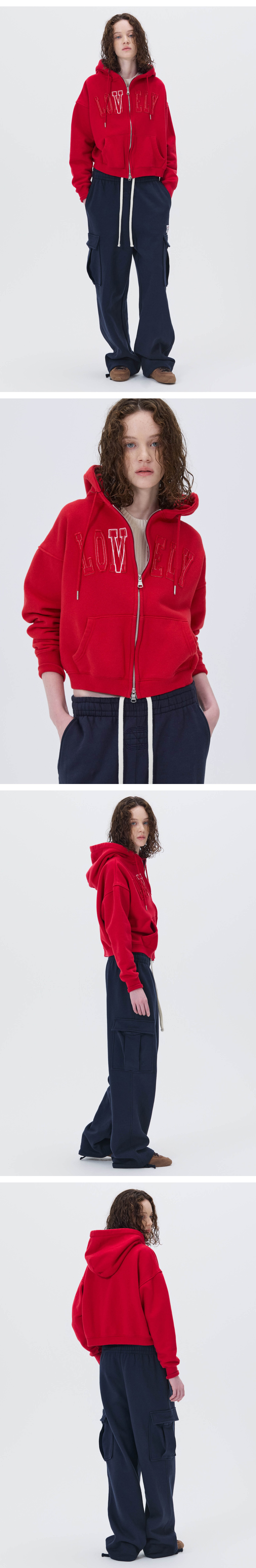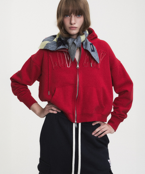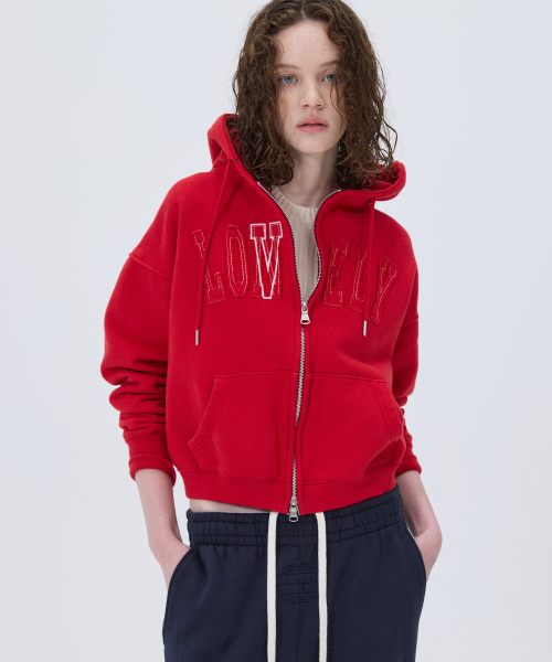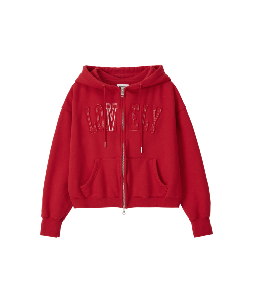 LONELY/LOVELY CROP HOODIE ZIP-UP RED