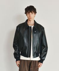 BEN GOAT LEATHER SHORT BOMBER JACKET (BLACK)