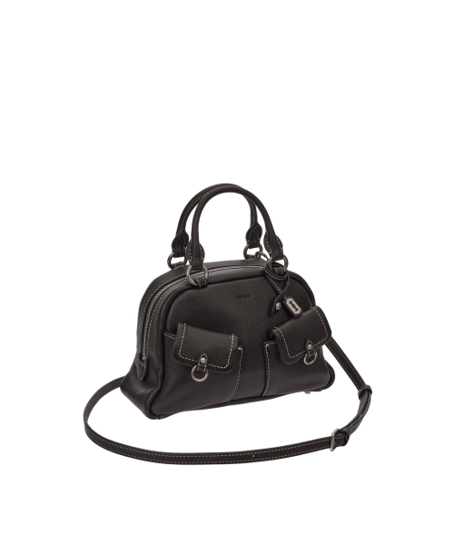 분크의 시그니처 쉐입을 살리면서 시크한 무드를 표현한 토트백 자석 클로징의 포켓 디자인이 특징 크로스 착용시 핸들을 접고 편안하게 착용 가능 가죽 끈에 레이저 장식으로 포인트를 줘서 참으로 포인트