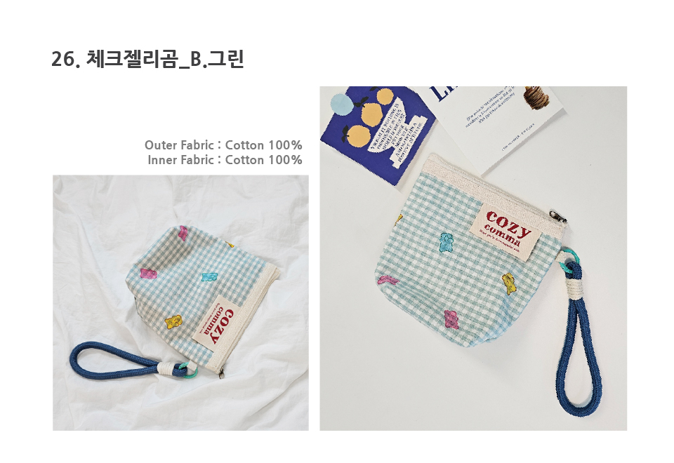 나만의 커스텀 손목 스트랩파우치_체크 젤리베어 B.그린