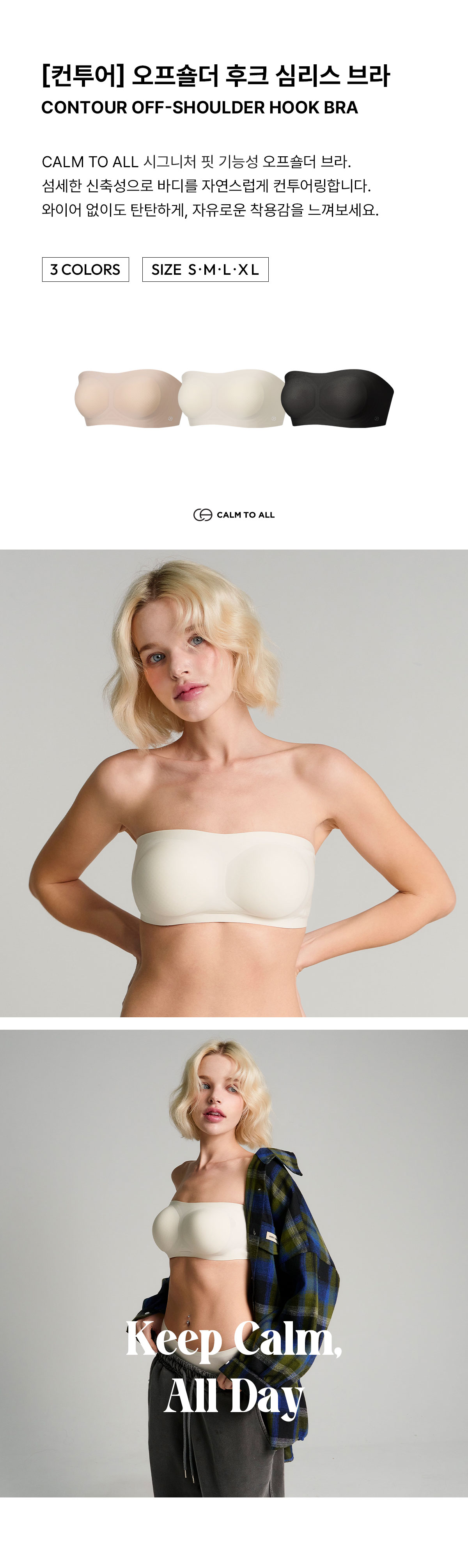 [컨투어] 오프숄더 후크 심리스 브라 3colors