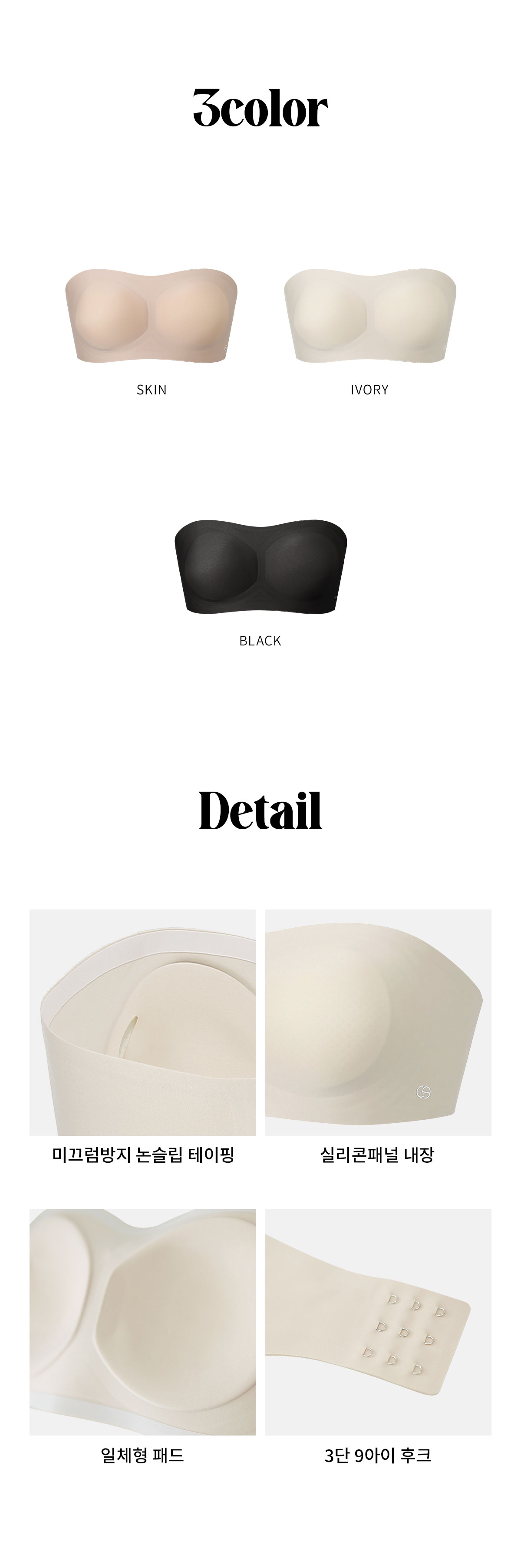 [컨투어] 볼륨업 끈 후크 심리스 브라 3colors