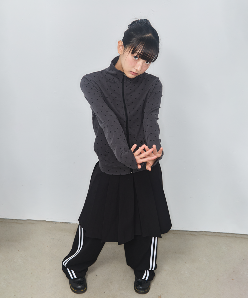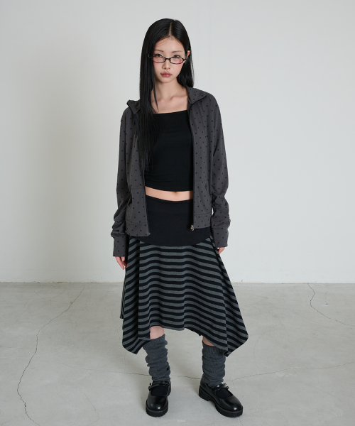 우먼즈 볼드 플리츠 니 렝스 스커트 [블랙]
