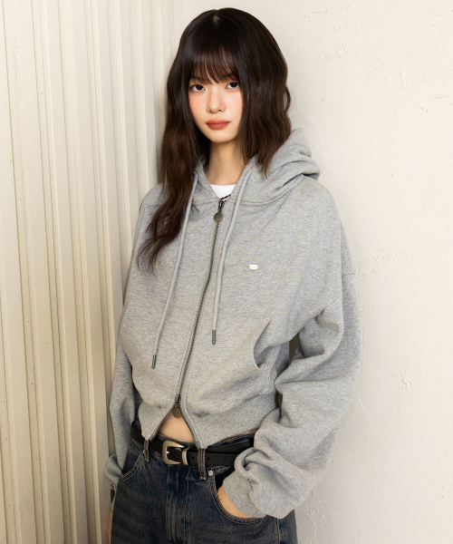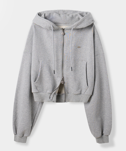 2WAY 엔틱 스몰 로고 크롭 후드 집업_멜란지