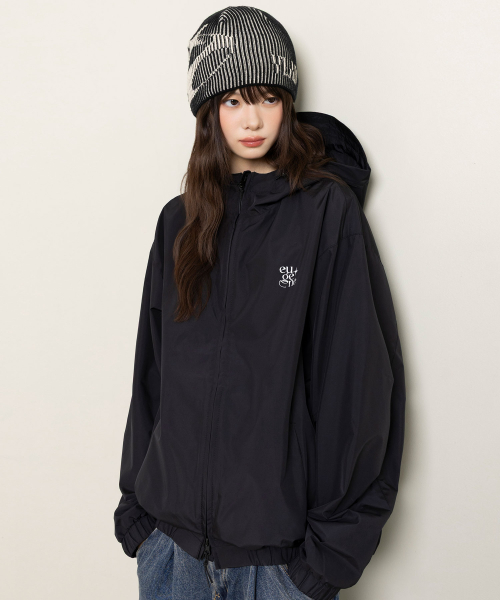 2WAY 후디드 윈드브레이커 자켓_블랙