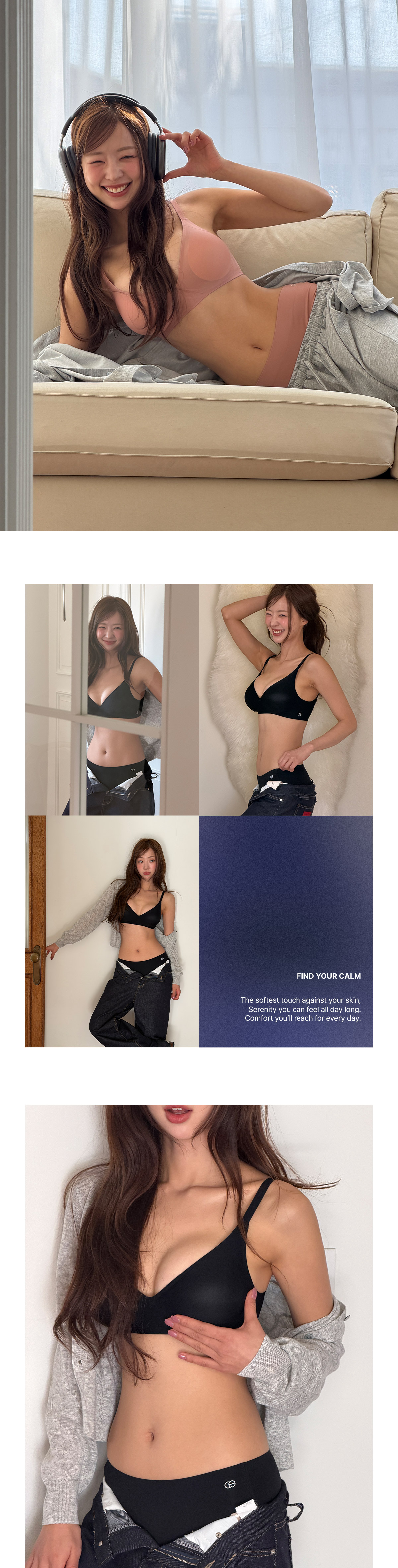[컨투어] [SET] 볼륨업 후크 브라&미디 삼각 팬티 3colors