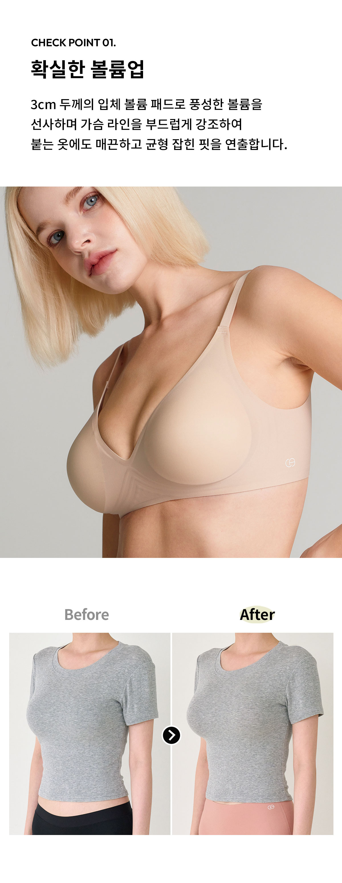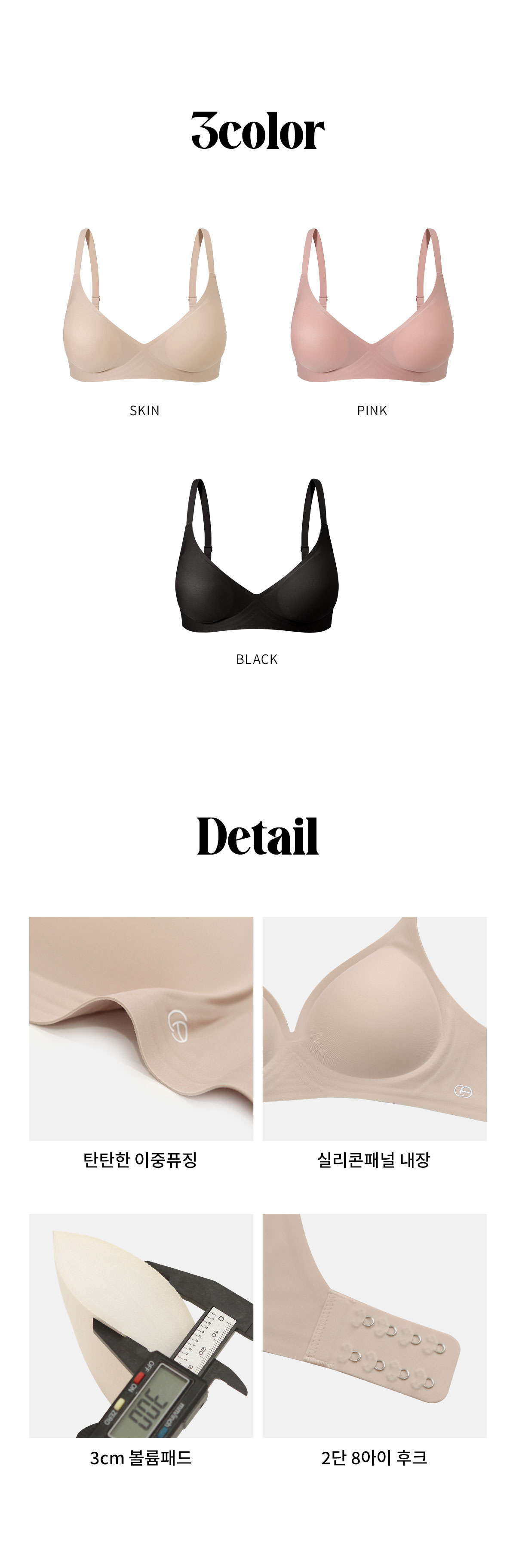 [컨투어] 볼륨업 끈 후크 심리스 브라 3colors