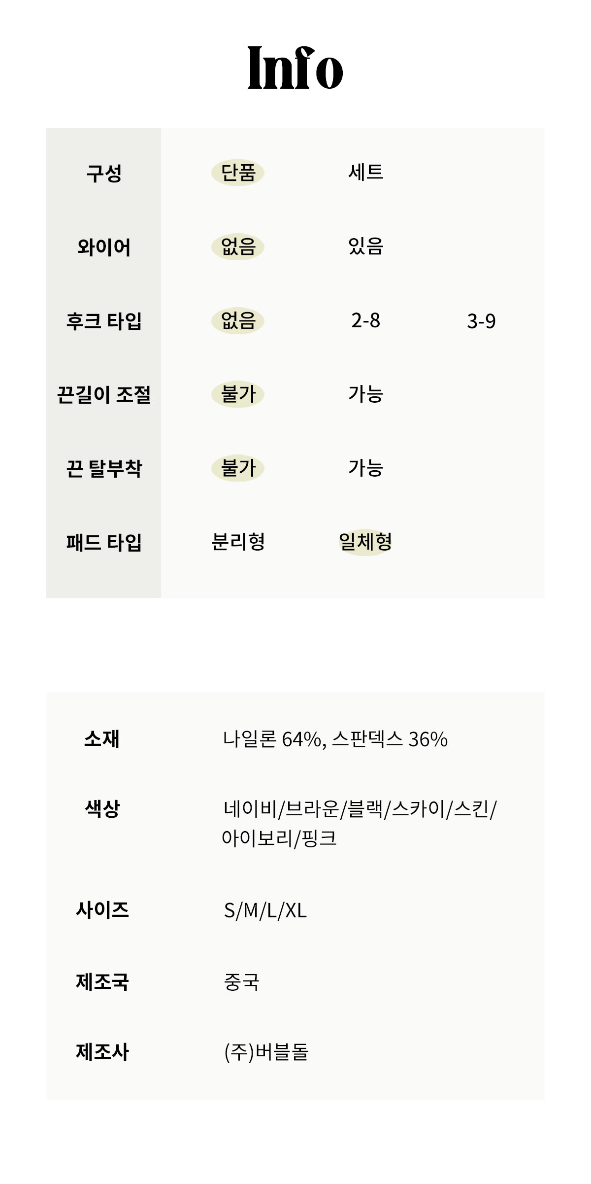 속옷/홈웨어 > 여성 속옷 상의