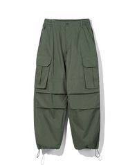 코튼 와이드 파라슈트 카고 팬츠_카키