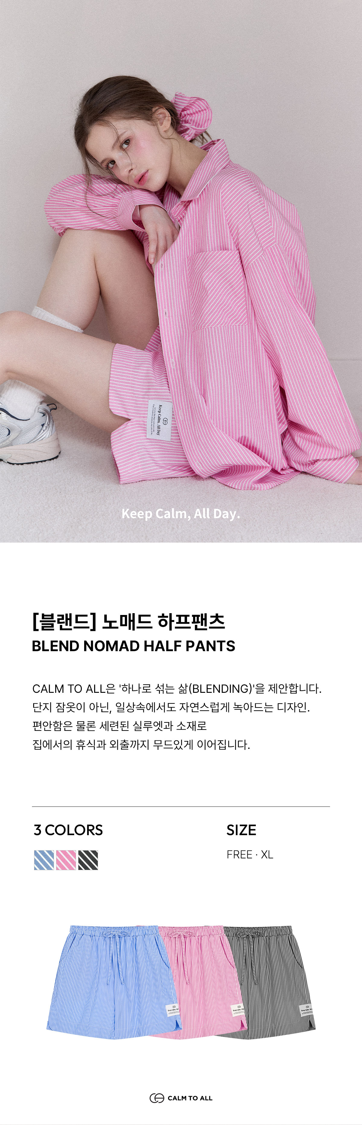 [블랜드] 노매드 스트라이프 하프팬츠 라운지웨어 3colors