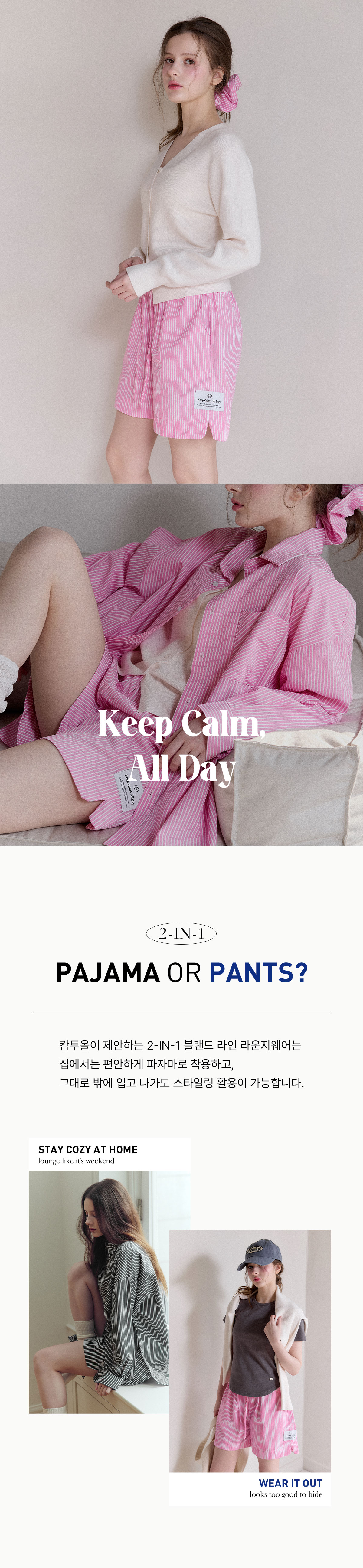 [블랜드] 레이어 스트라이프 하프팬츠 라운지웨어 3colors