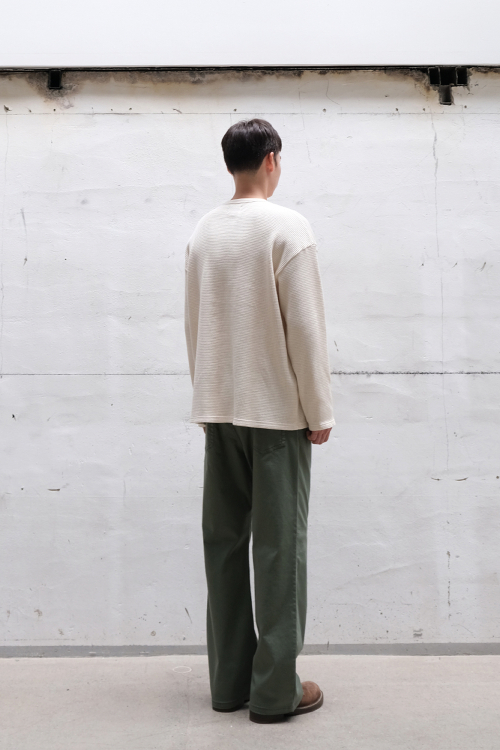 굵은 10수 면사로 밀도 있게 편직된 헤비와플 원단은 세탁 후 건조 방식이나 착용 습관에 따라 형태가 달라질 수 있으니 참고바랍니다