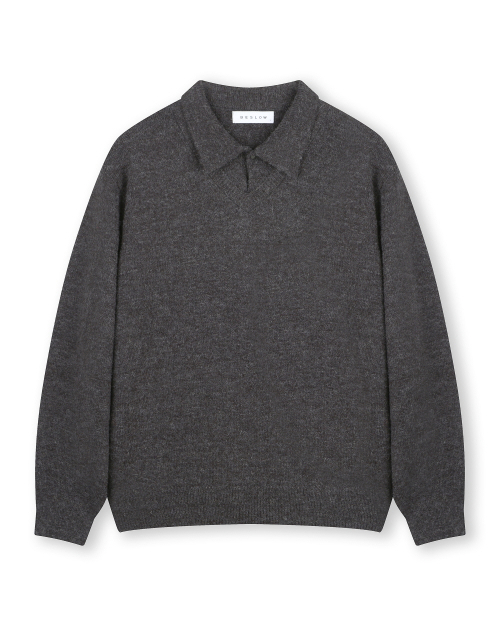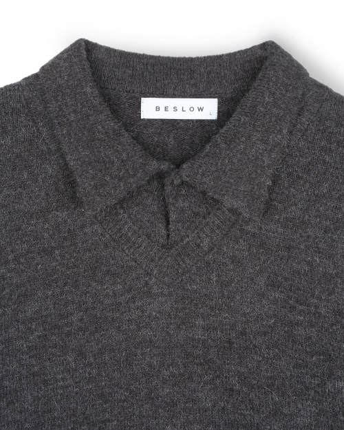 LAYERED COLLAR KNIT MELANGE CHARCOAL