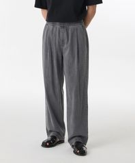 린넨 라이크 원 턱 와이드 밴딩 데님 팬츠 [그레이]