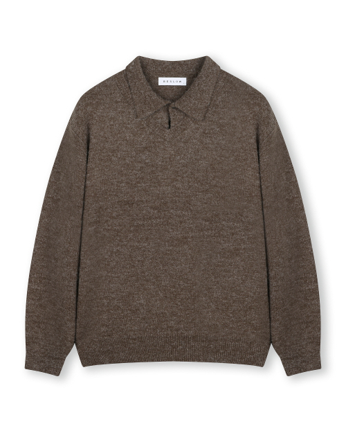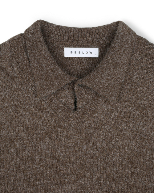 LAYERED COLLAR KNIT MELANGE BROWN