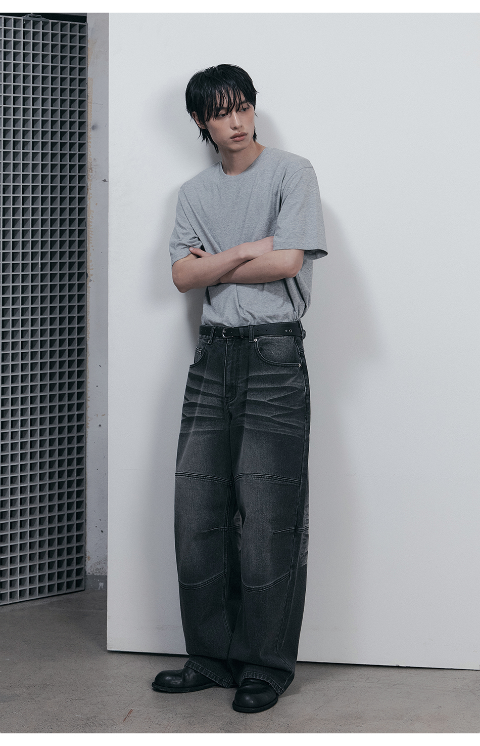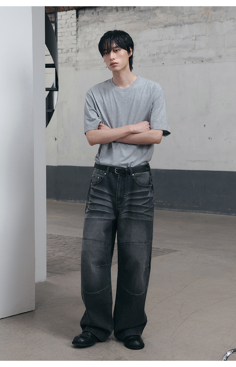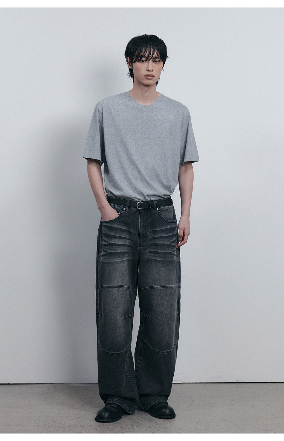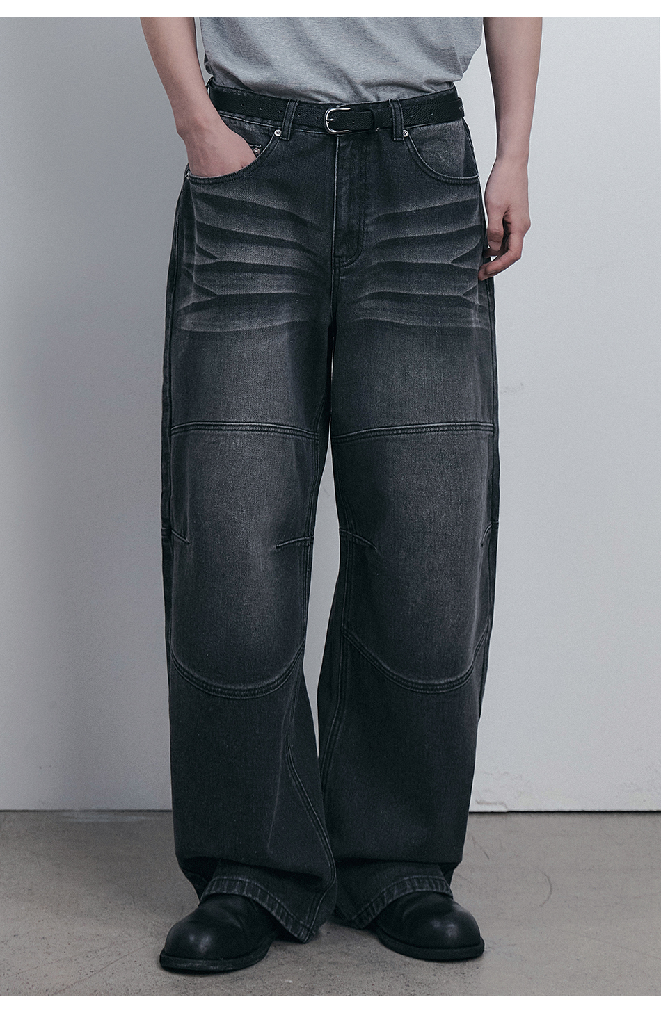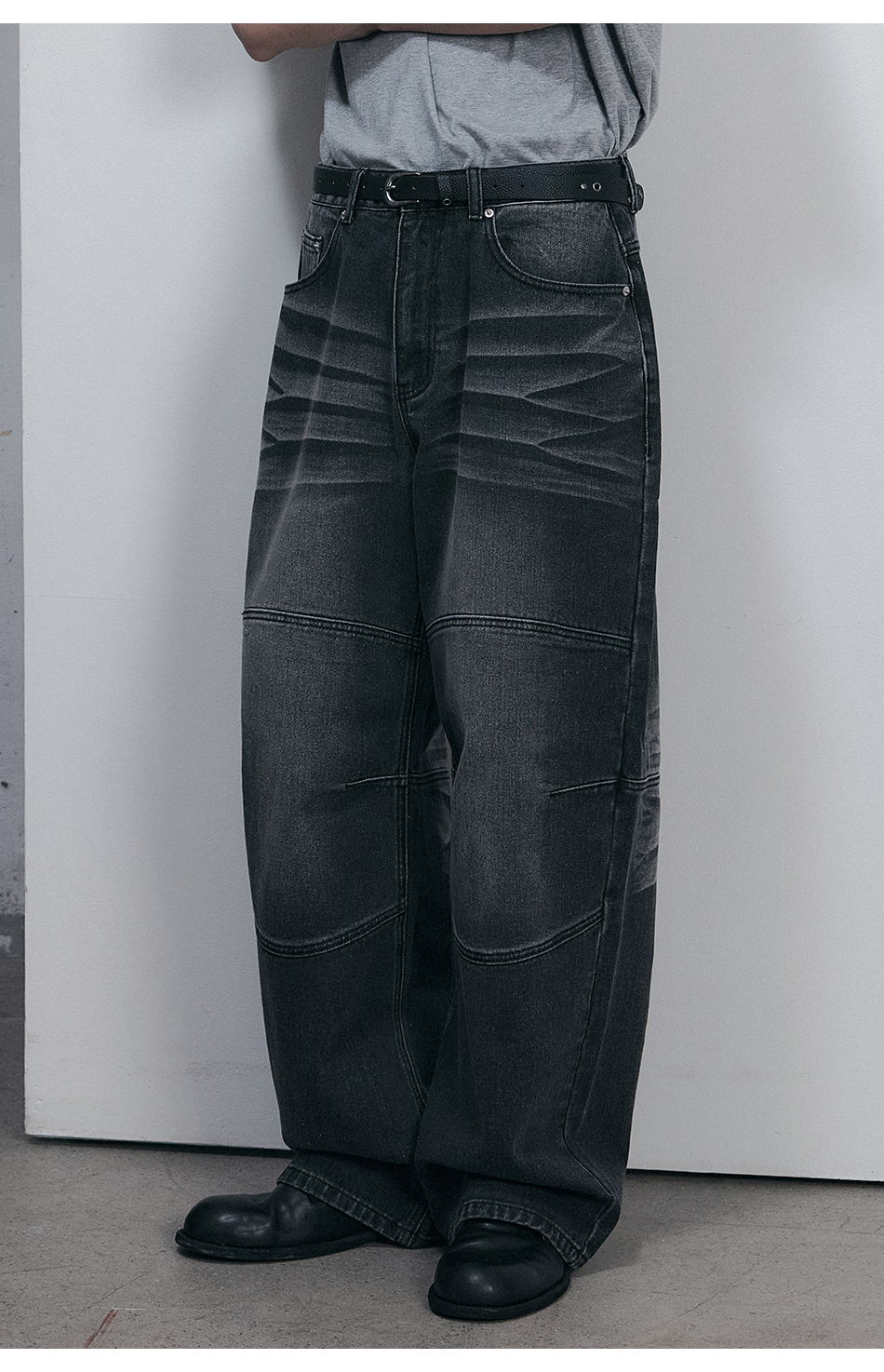 커브드 핀턱 벌룬 스웨트팬츠 블랙 YLP-602