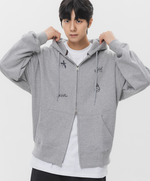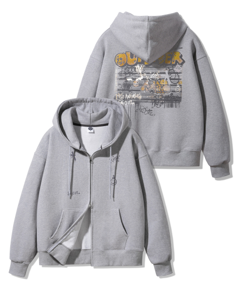 리벳 아플리케 오버핏 후드집업 [그레이]