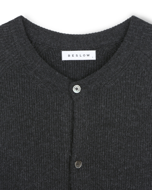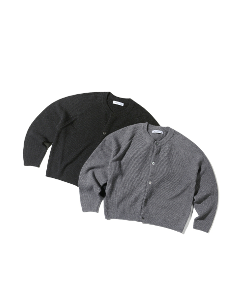 CASHMERE BLENDED CREW NECK CARDIGAN MELANGE CHARCOAL