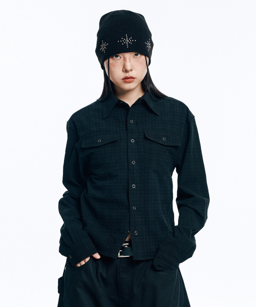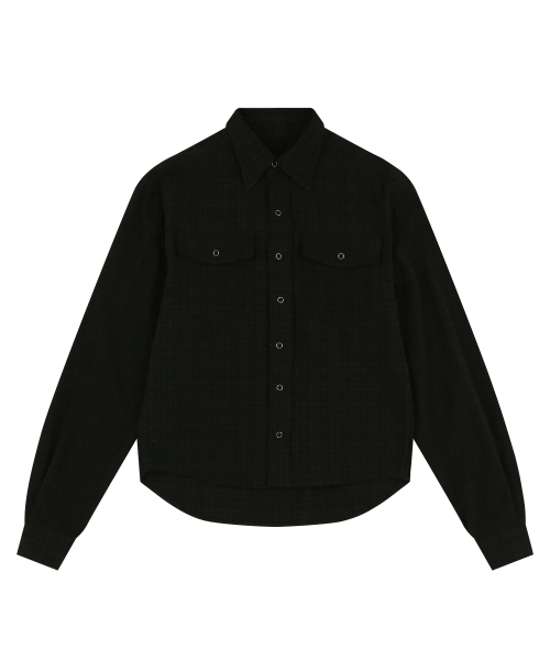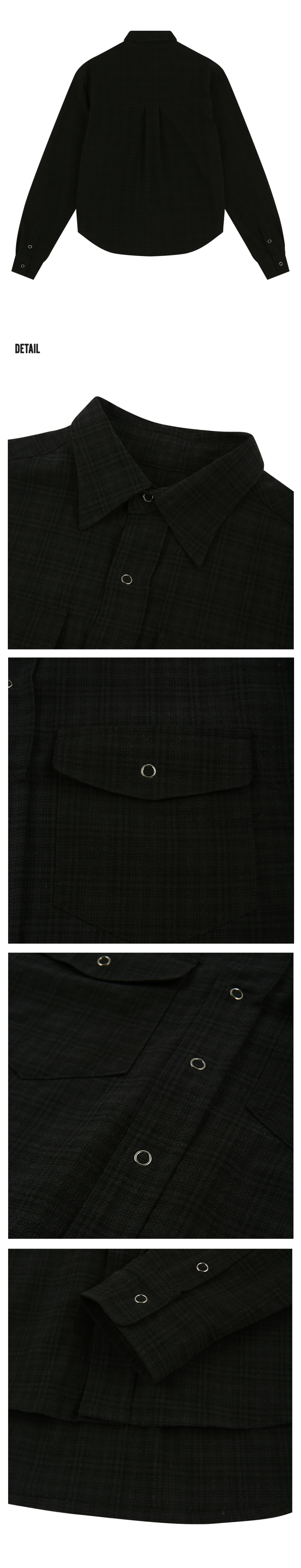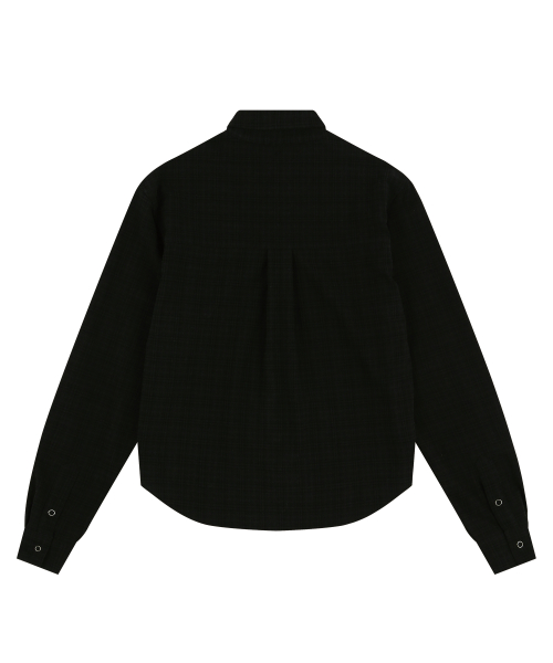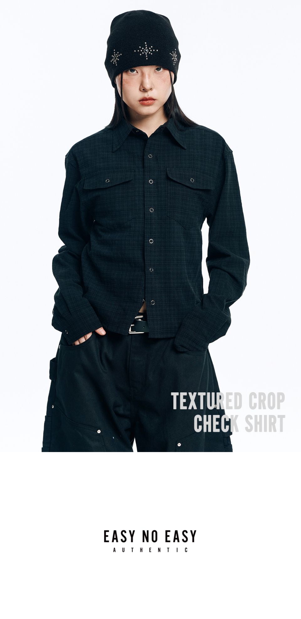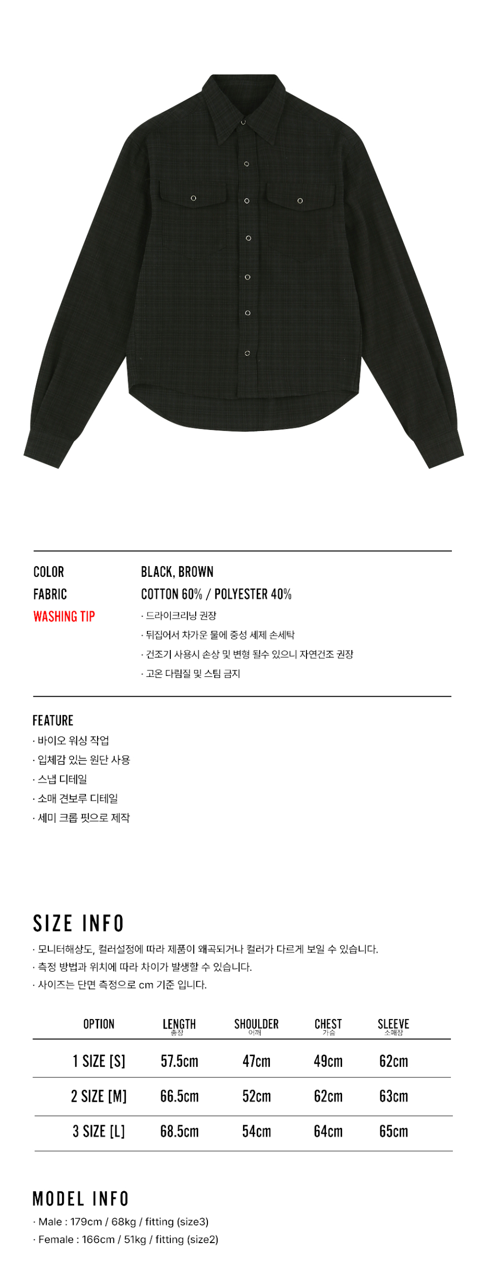 텍스쳐 크롭 롤업 체크 반팔 셔츠 - 브라운