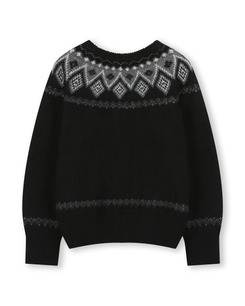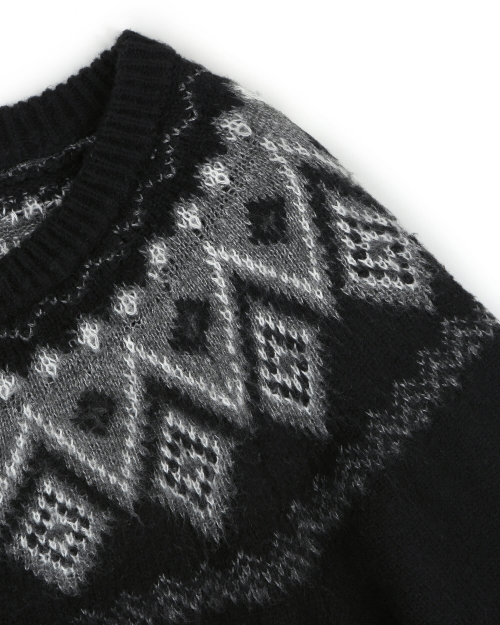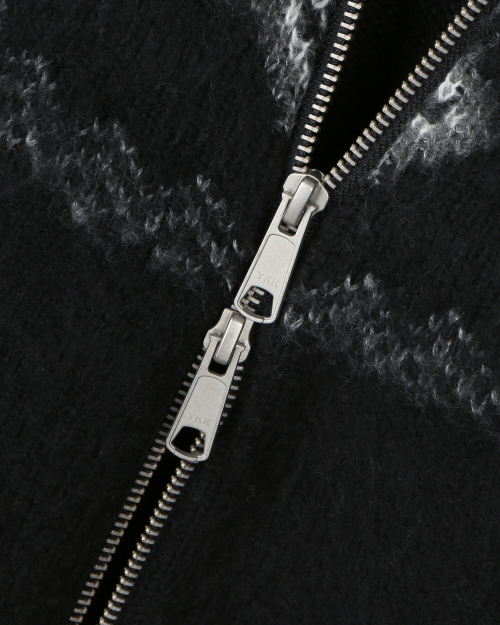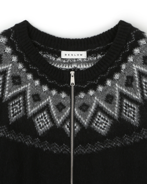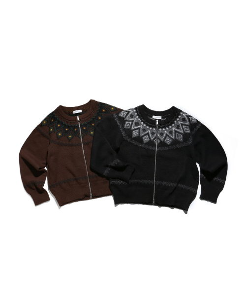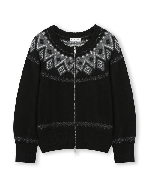 NORDIC KNIT CREW NECK ZIP-UP CARDIGAN BLACK