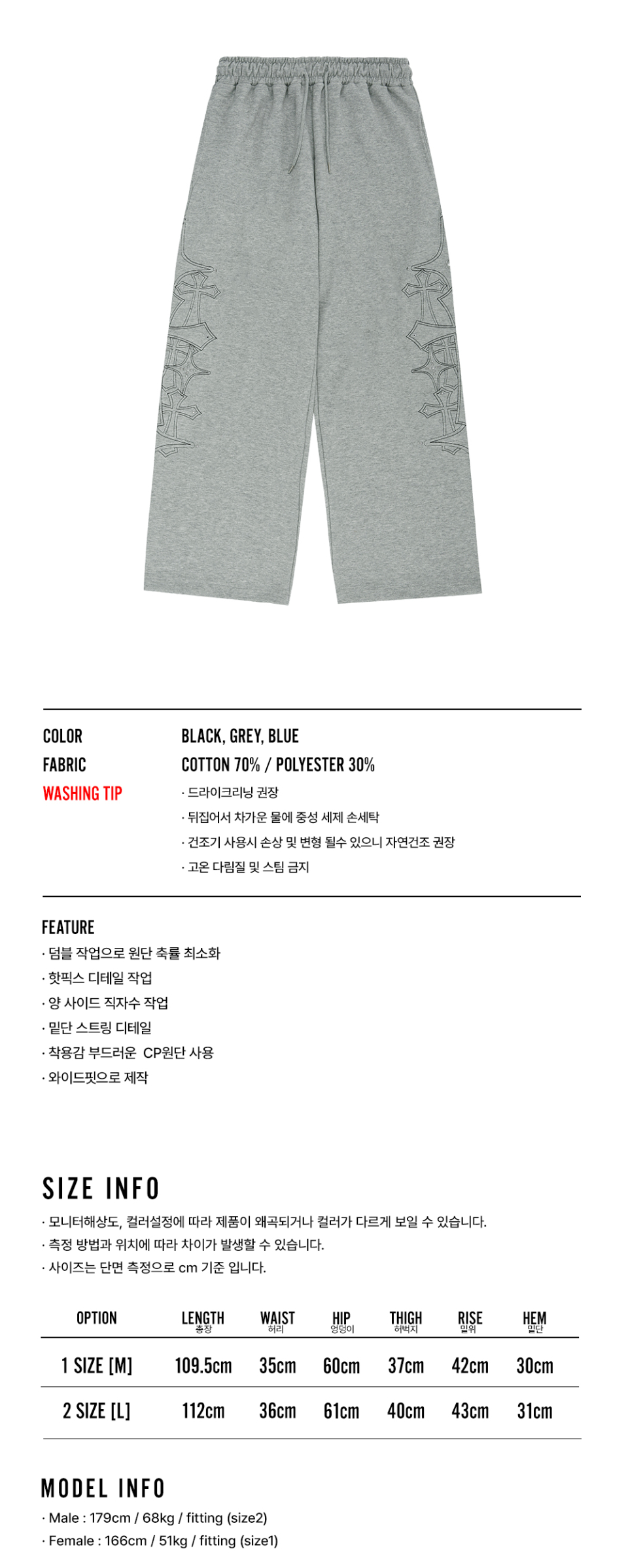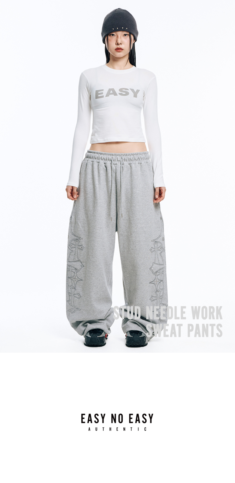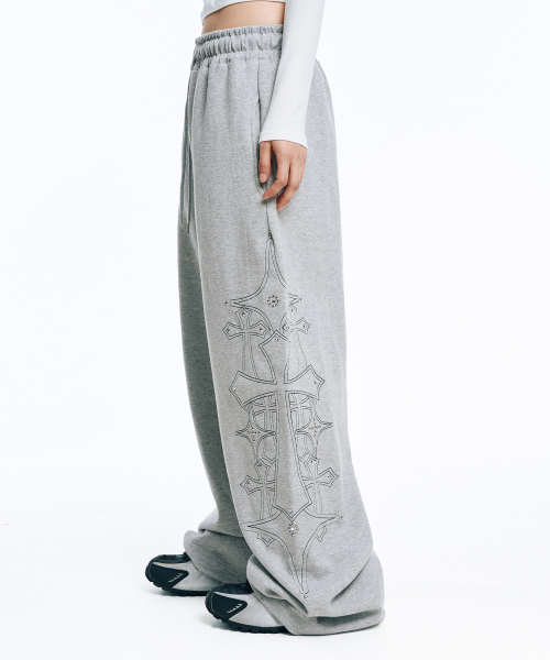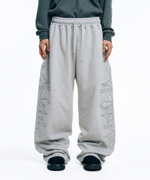 스터드 니들 워크 스웻 팬츠-그레이