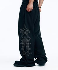 스터드 니들 워크 스웻 팬츠-블랙