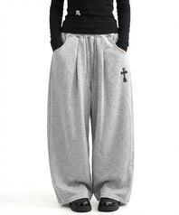 크로스 와이드 원턱 스웨트 팬츠_그레이