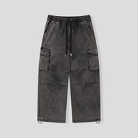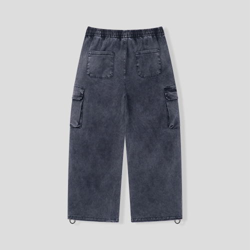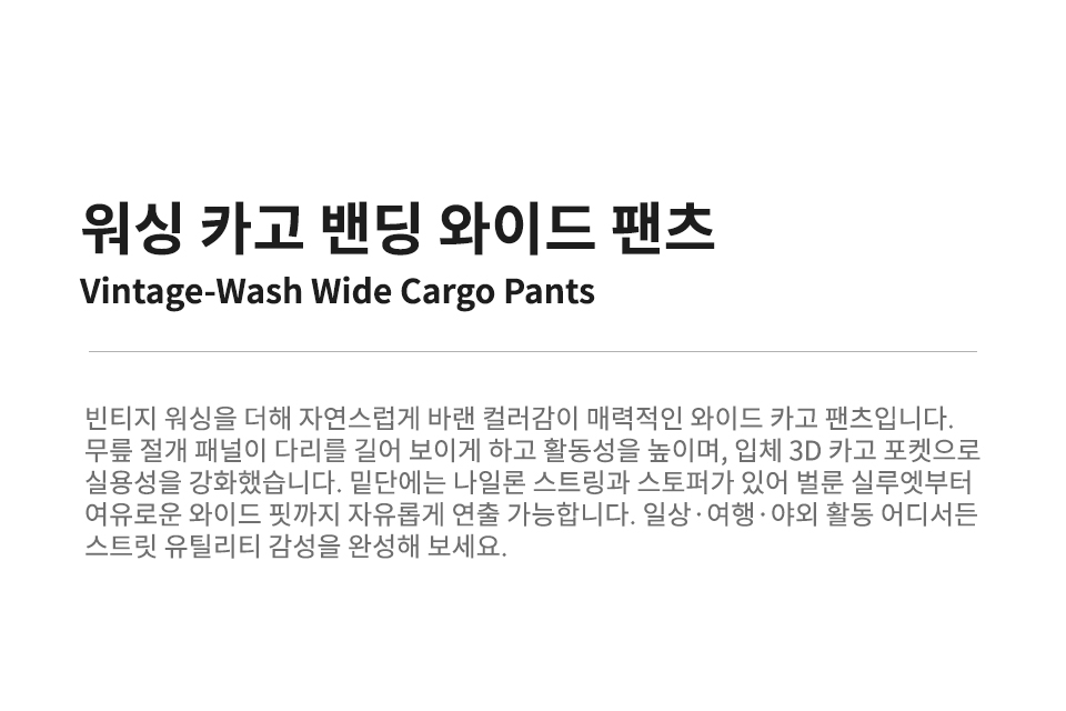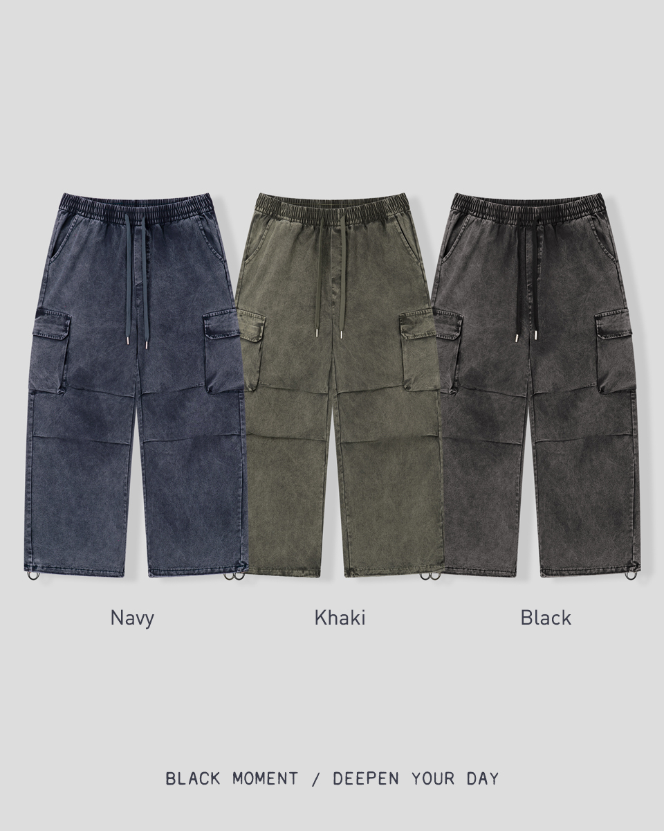 워싱 카고 밴딩 와이드 팬츠 [블랙]