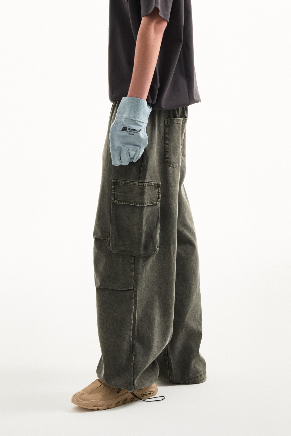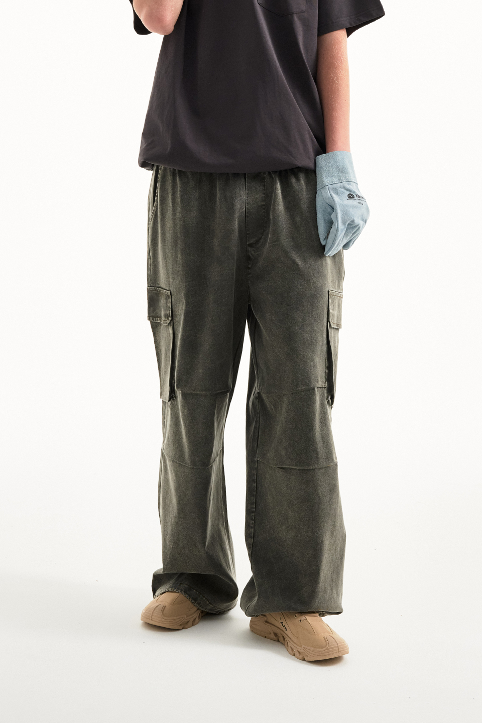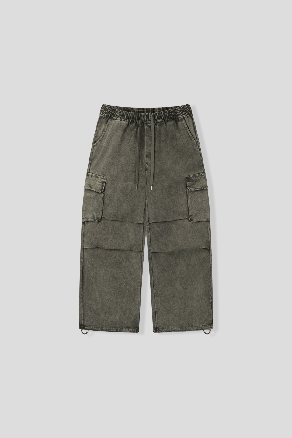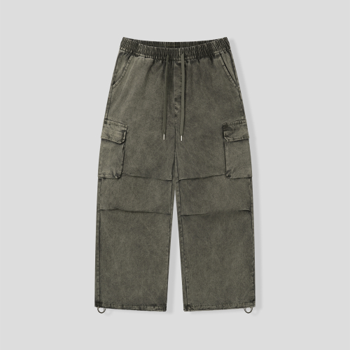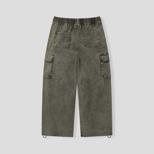 워싱 카고 밴딩 와이드 팬츠 [카키]