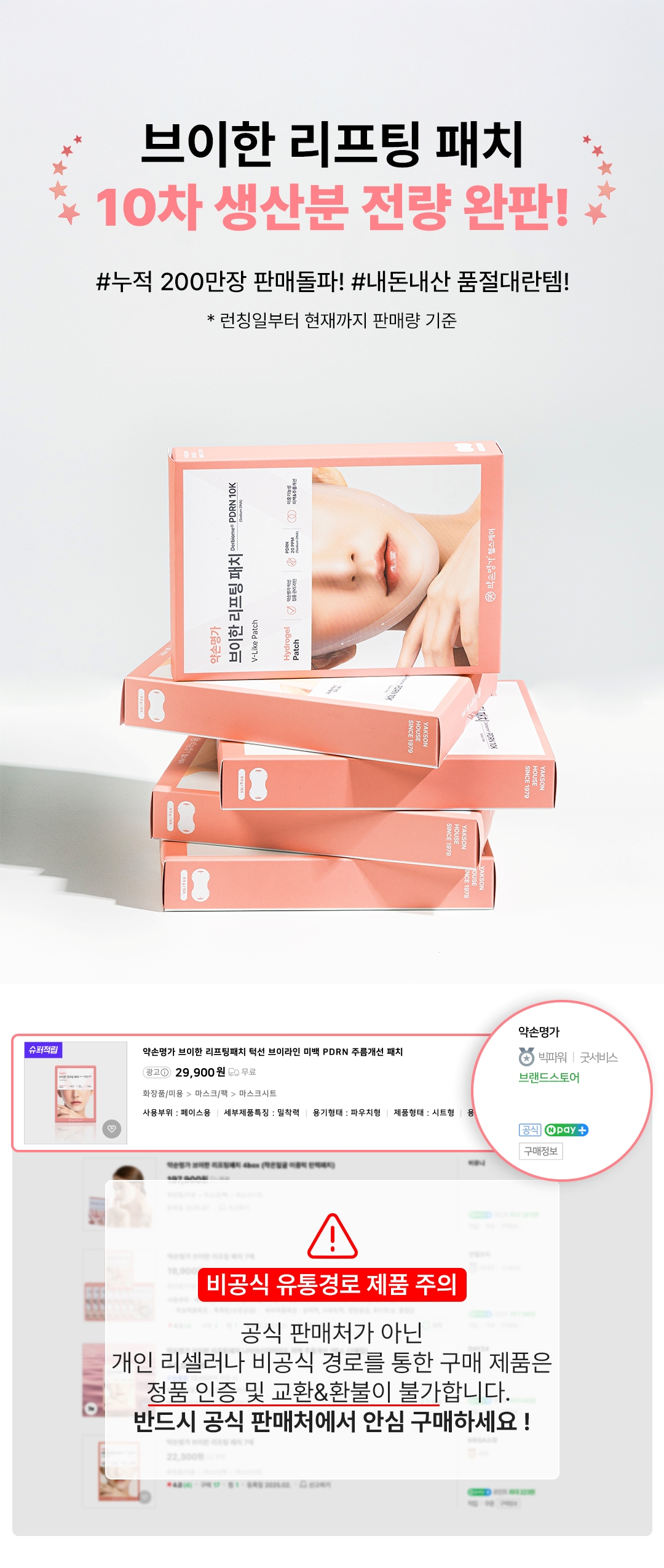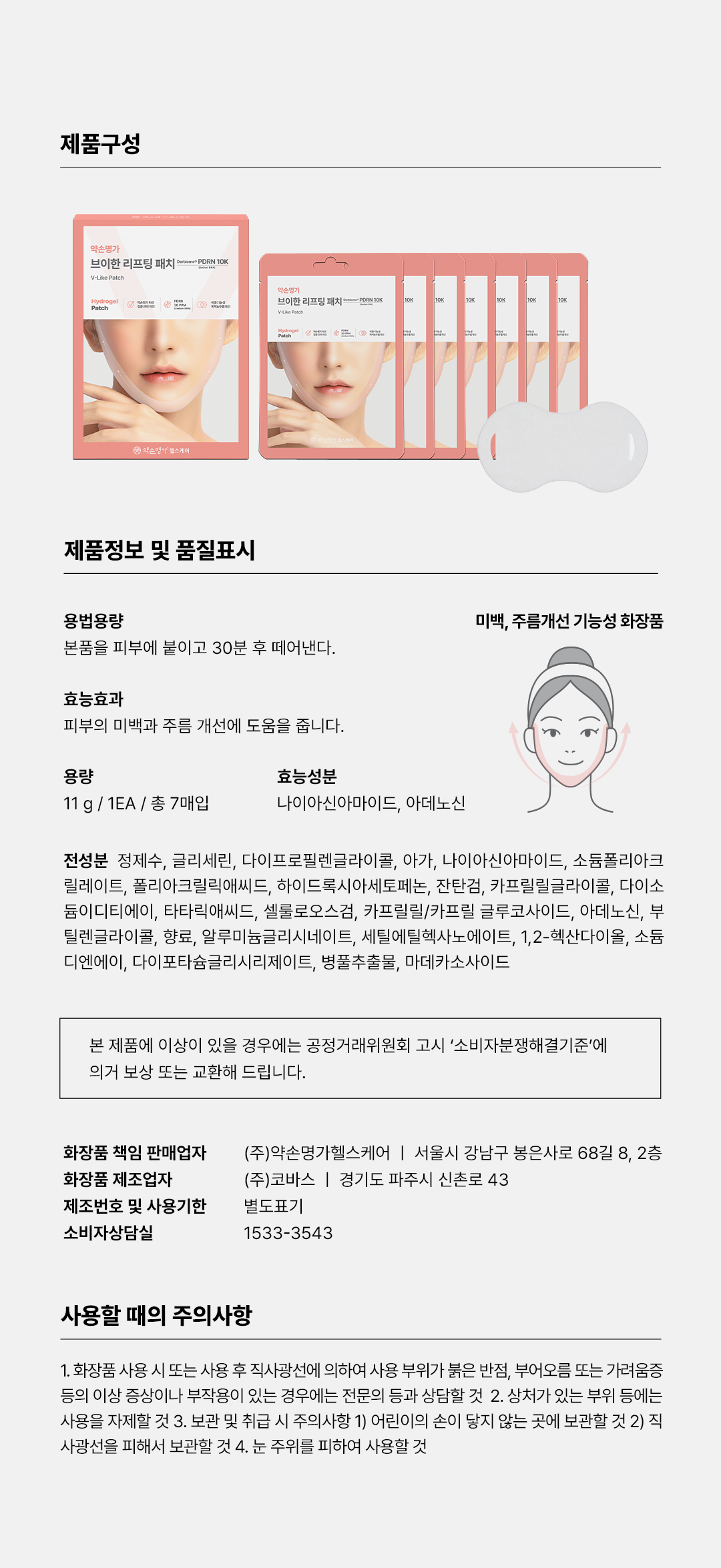 약손명가 브이한 리프팅패치 턱선 브이라인 미백 PDRN 주름개선 패치