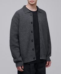 오버사이즈 리브드 칼라드 가디건 [미디엄 그레이]