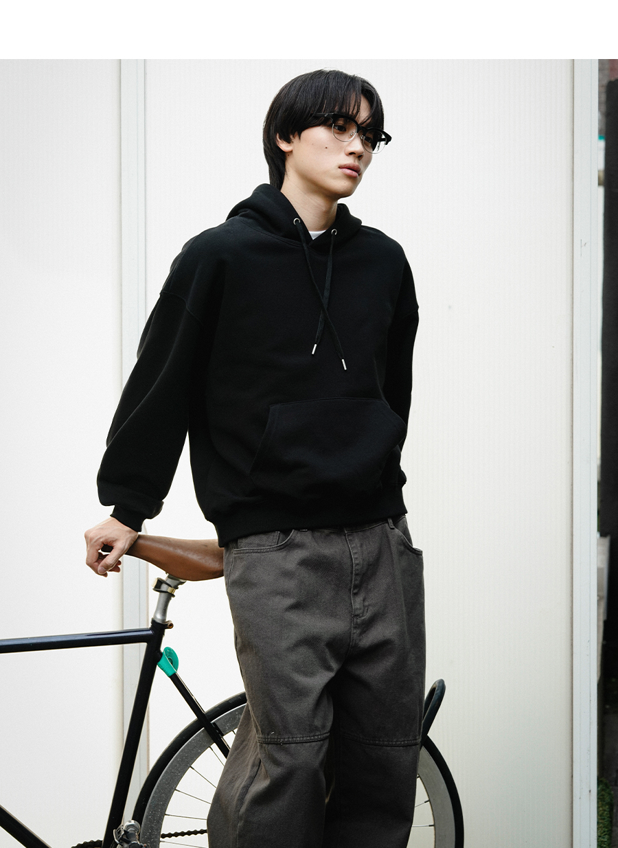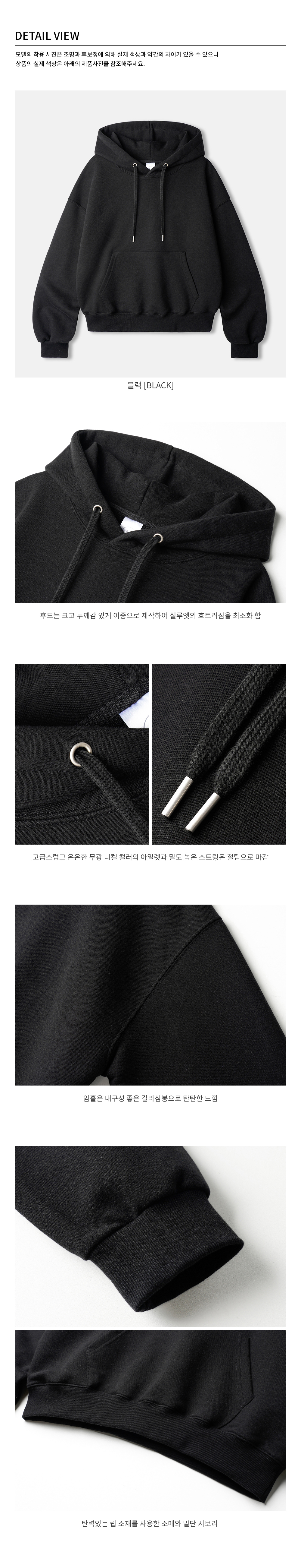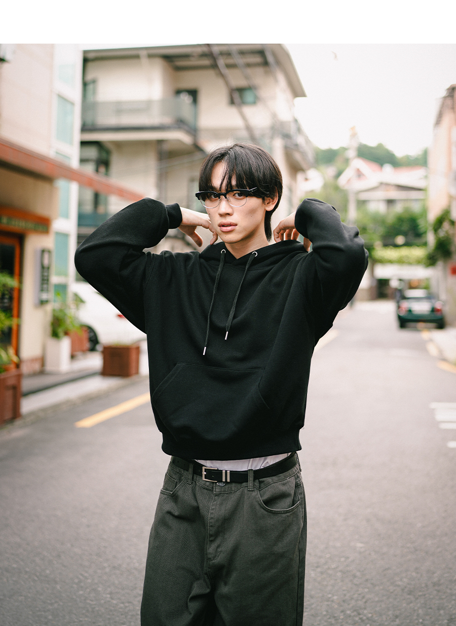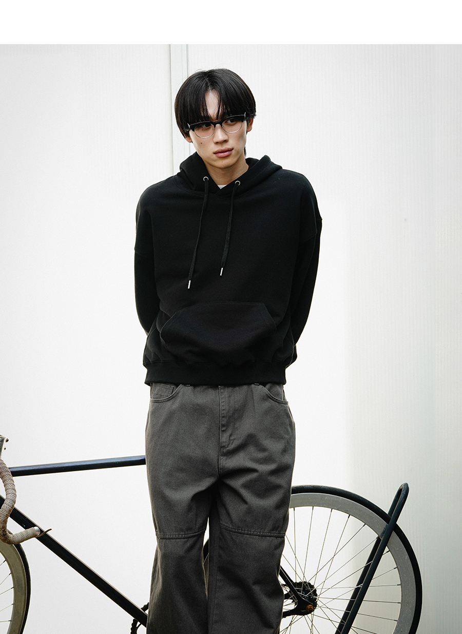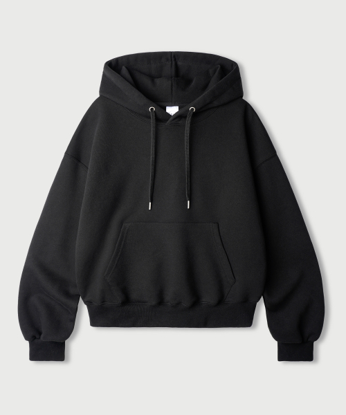 오버핏 세미 크롭 스냅 후드 블랙