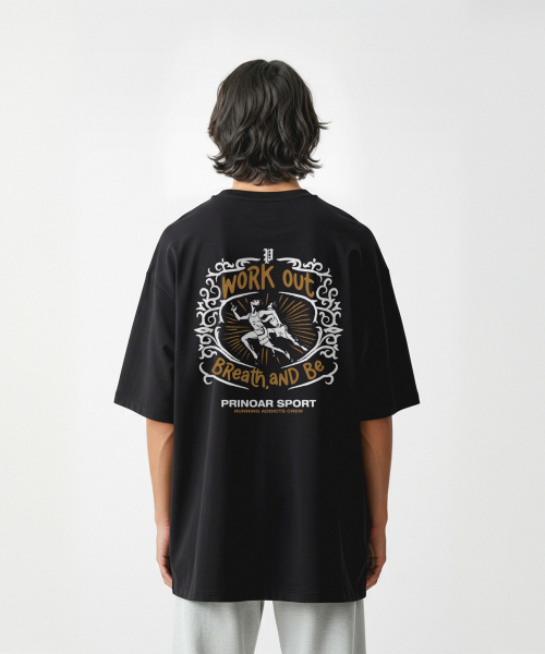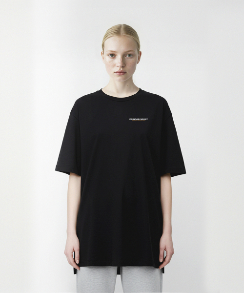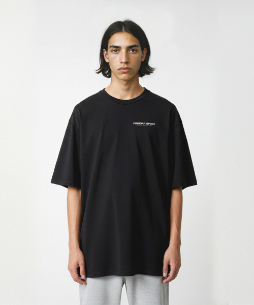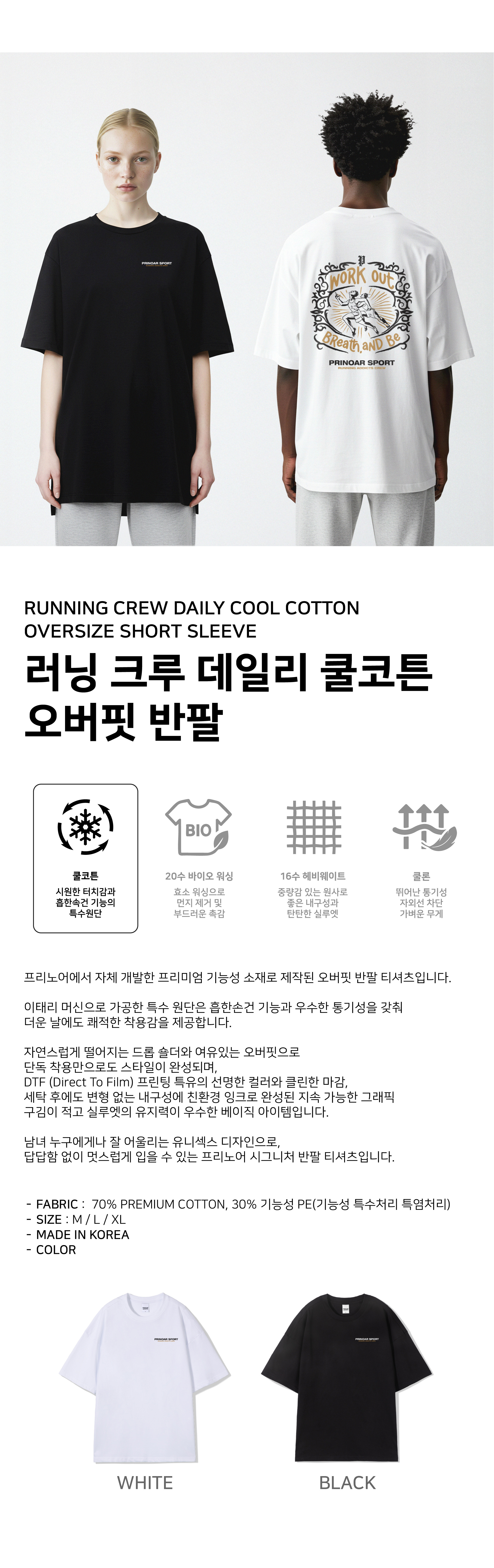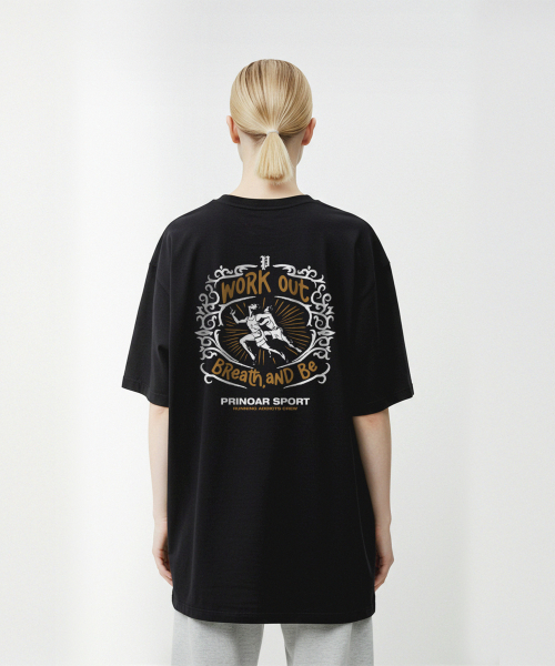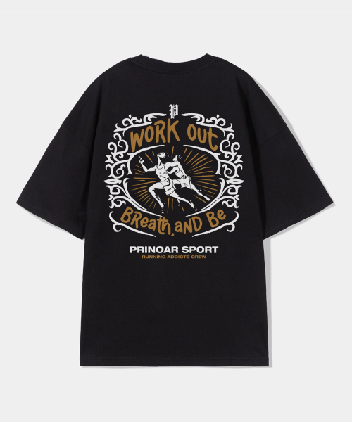 러닝 크루 쿨코튼 오버핏 반팔티-블랙