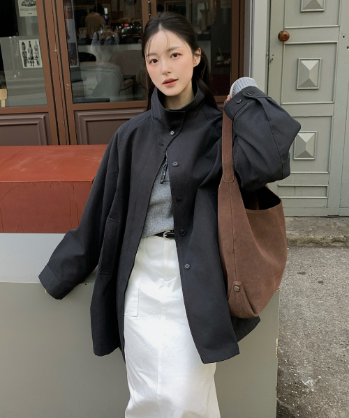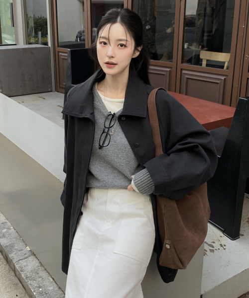 SIOT4152 하이넥 하프 트렌치 코트_Charcoal