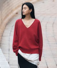 SIKN2181 벌룬 브이넥 루즈 핏 니트_Red