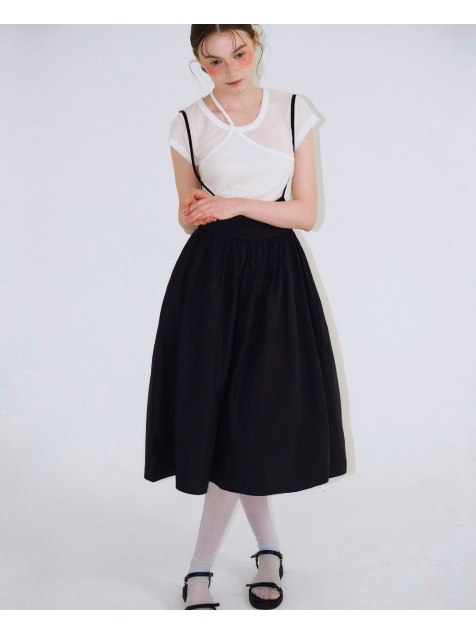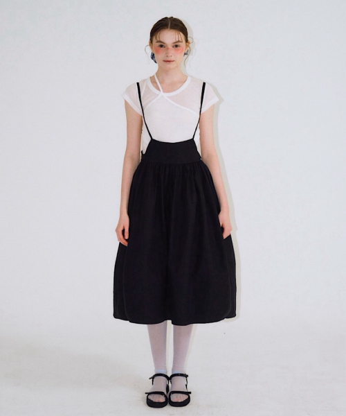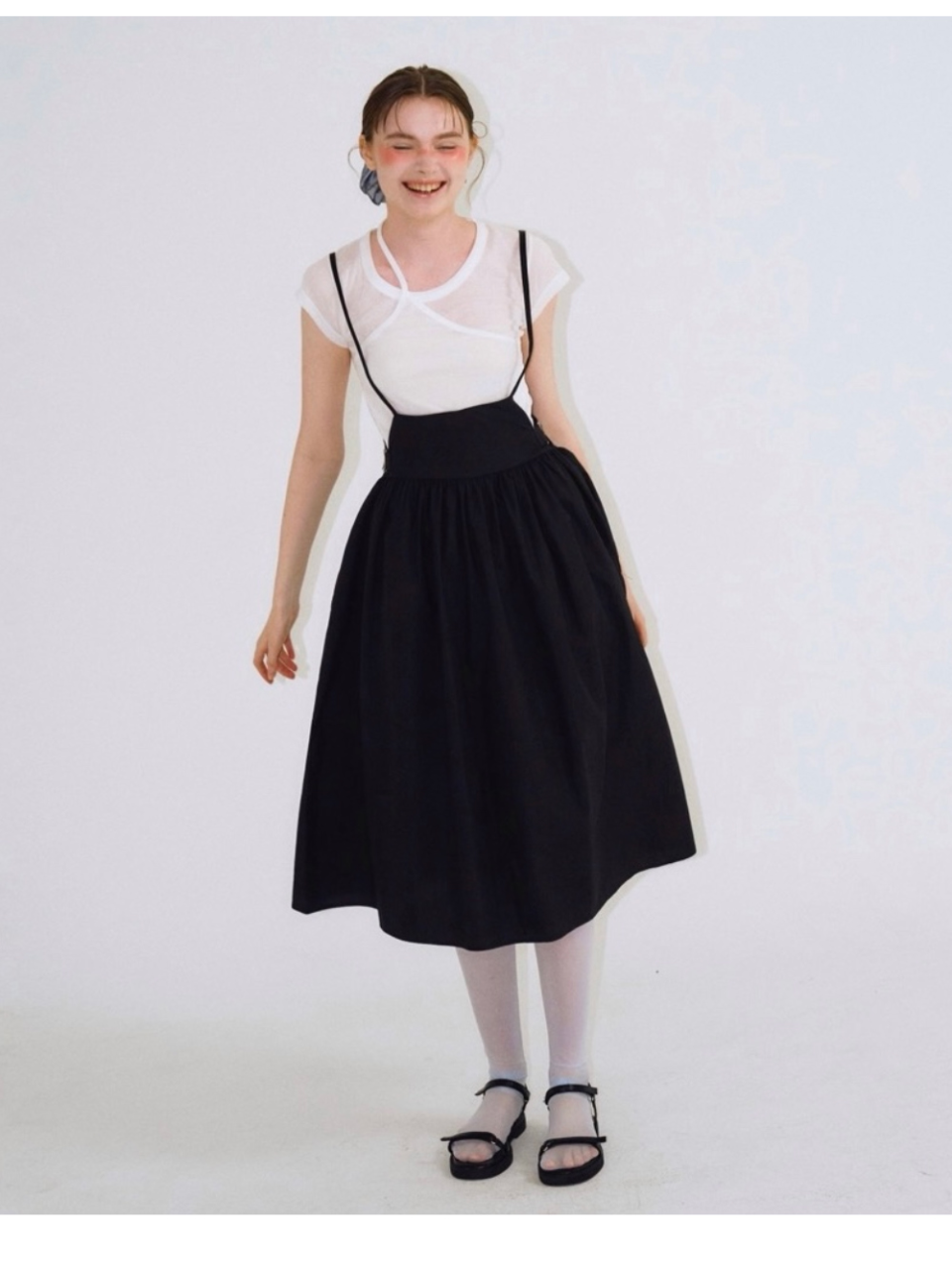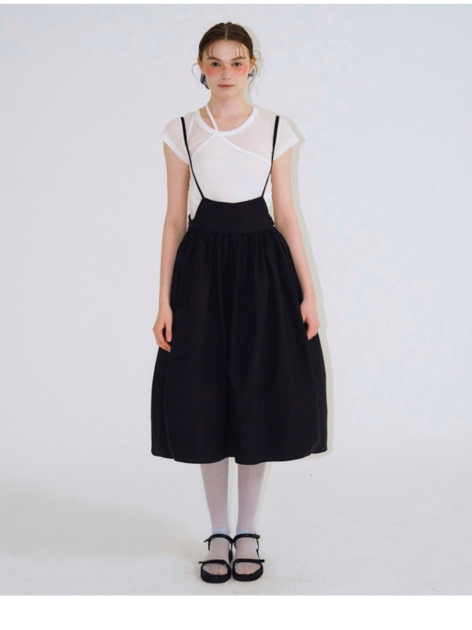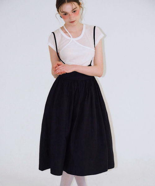 허리 라인을 따라 자연스럽게 퍼지는 볼륨이 경쾌한 인상을 더하며,