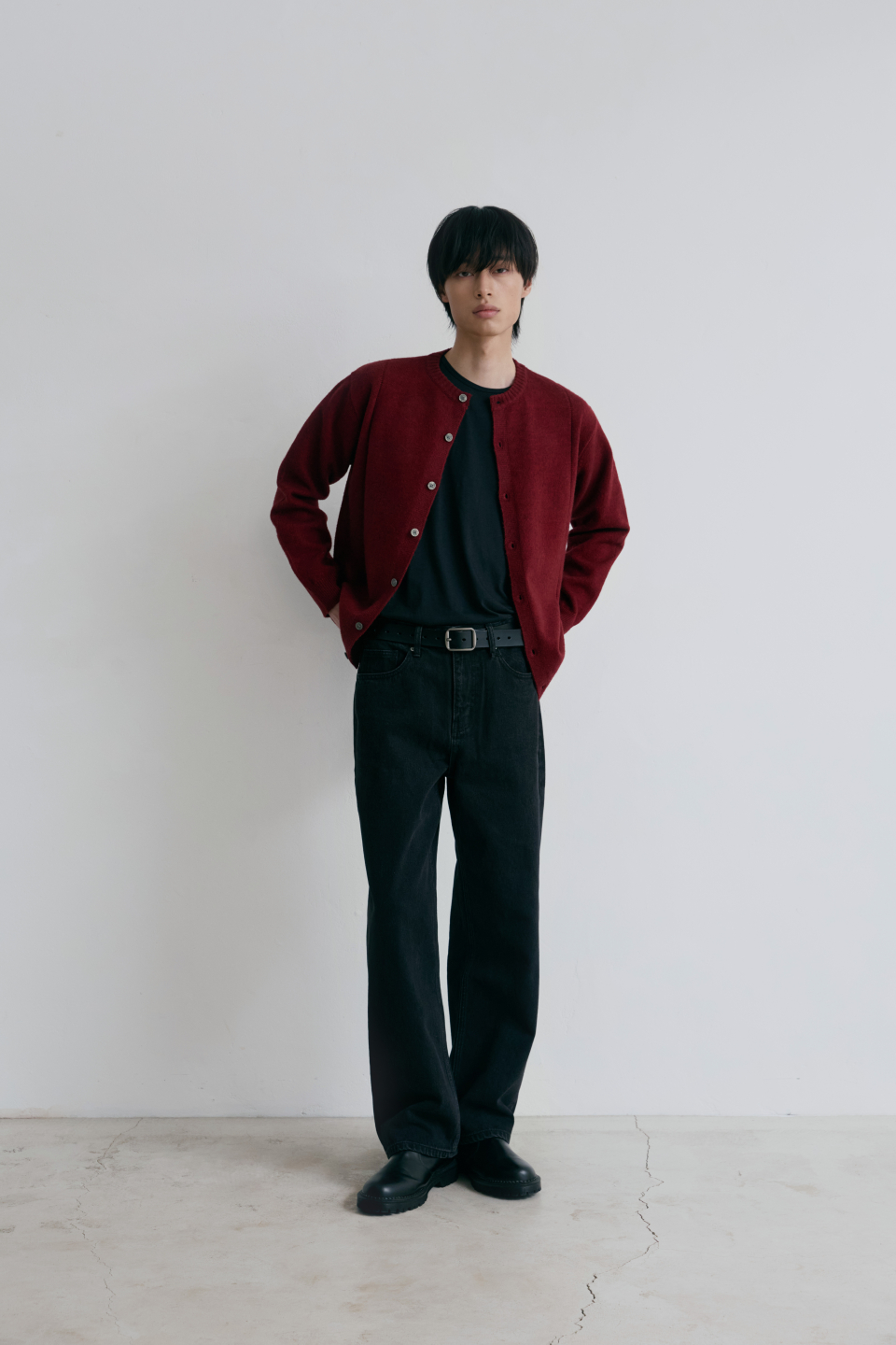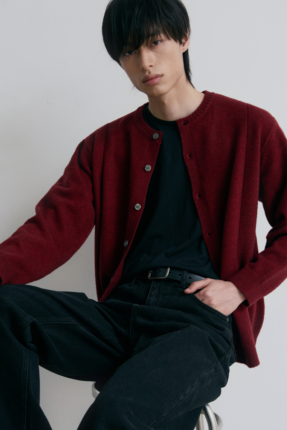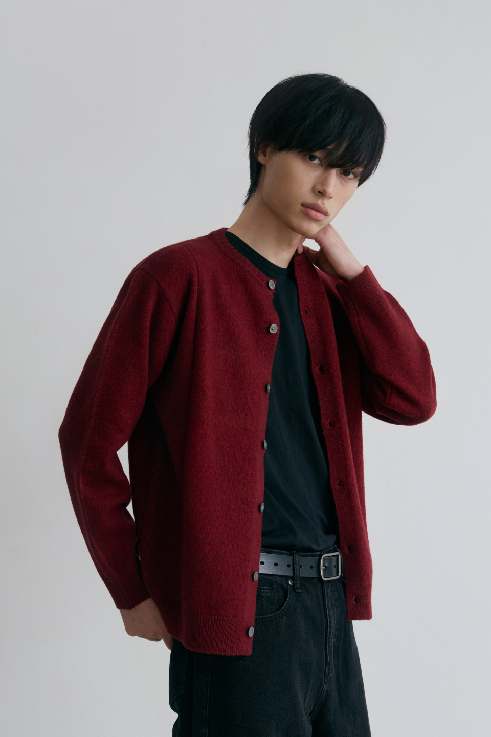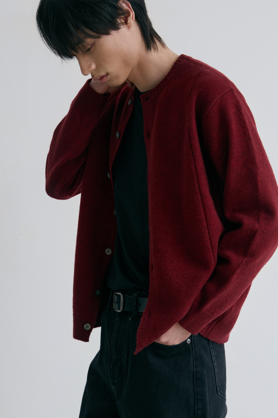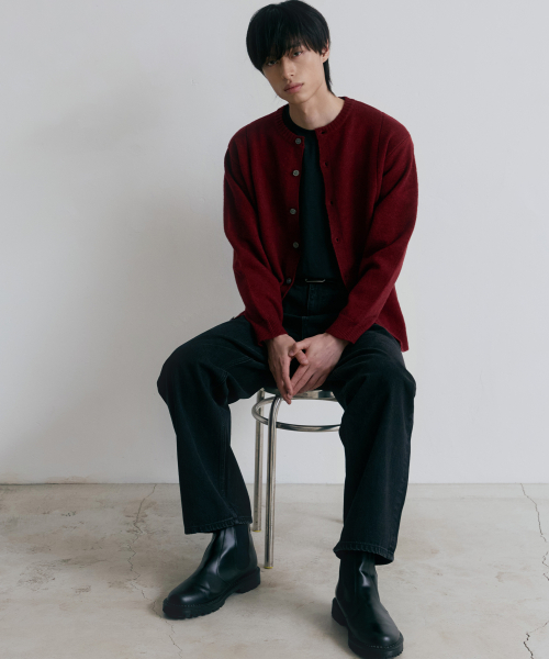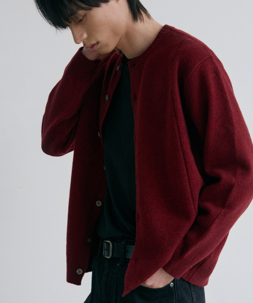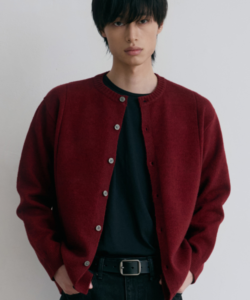 싱글라인 라운드 가디건 [버건디]