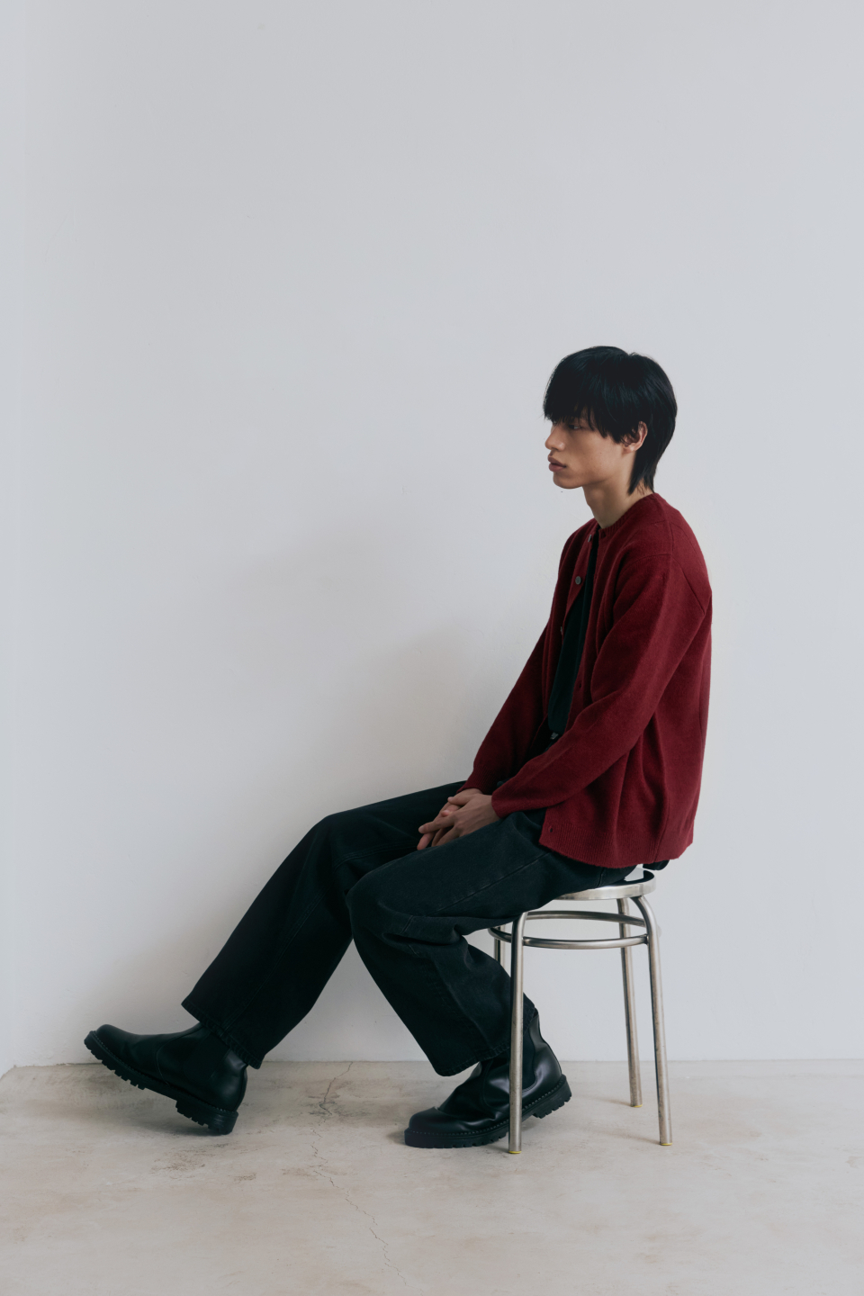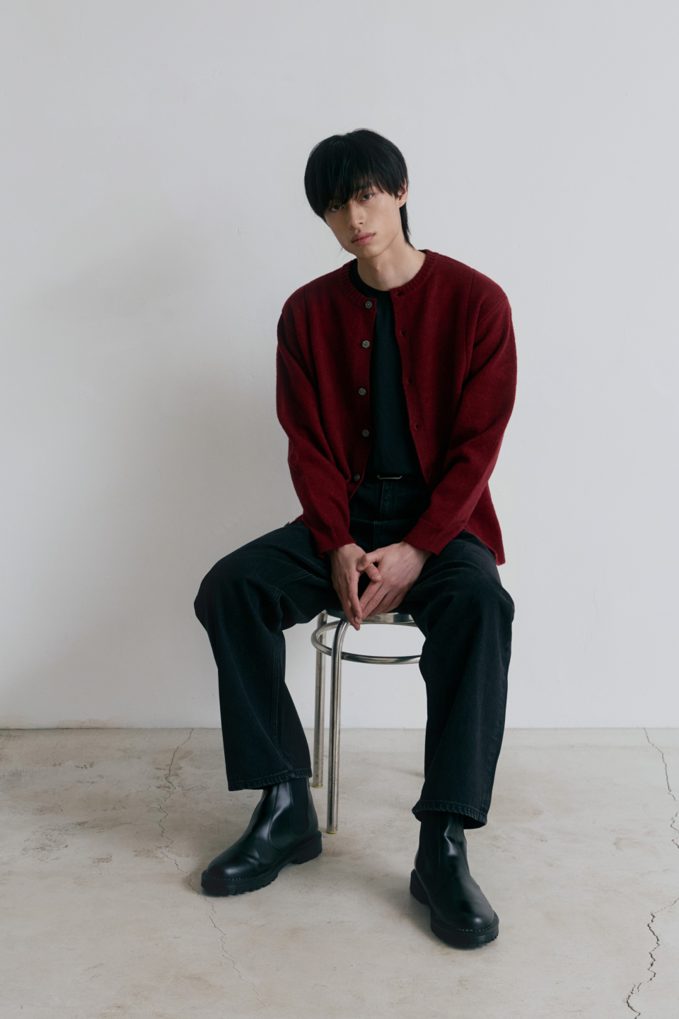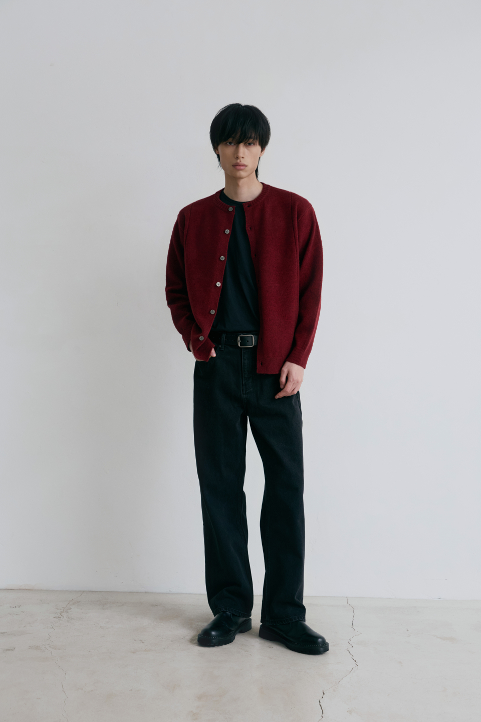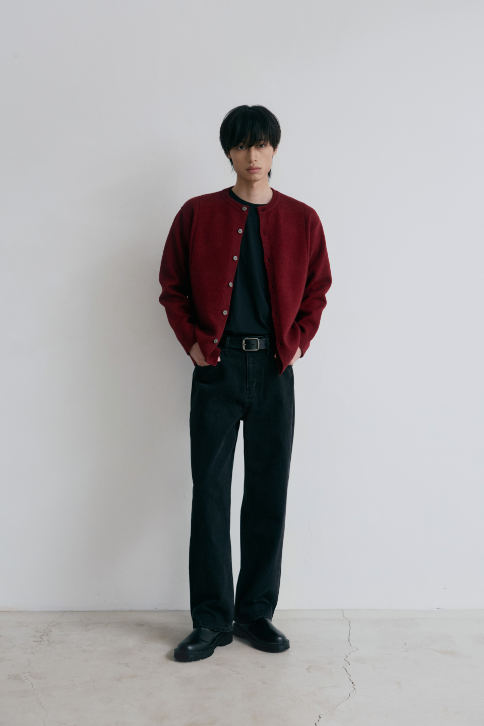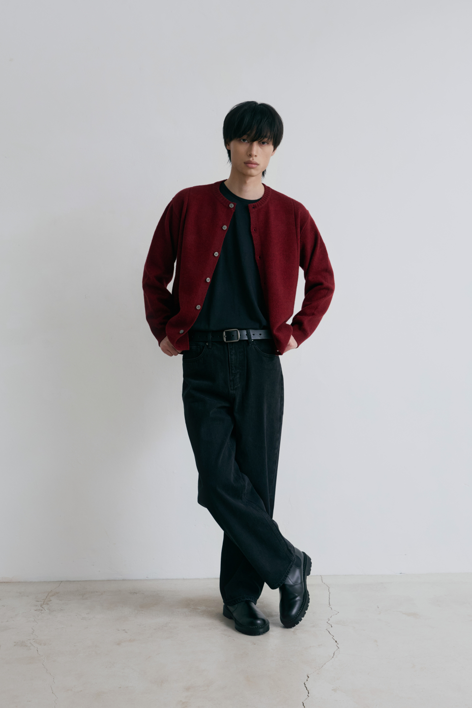싱글라인 라운드 가디건 [버건디]
