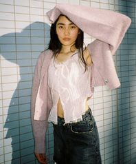 비숍 울 알파카 크루넥 가디건 페일 라벤더