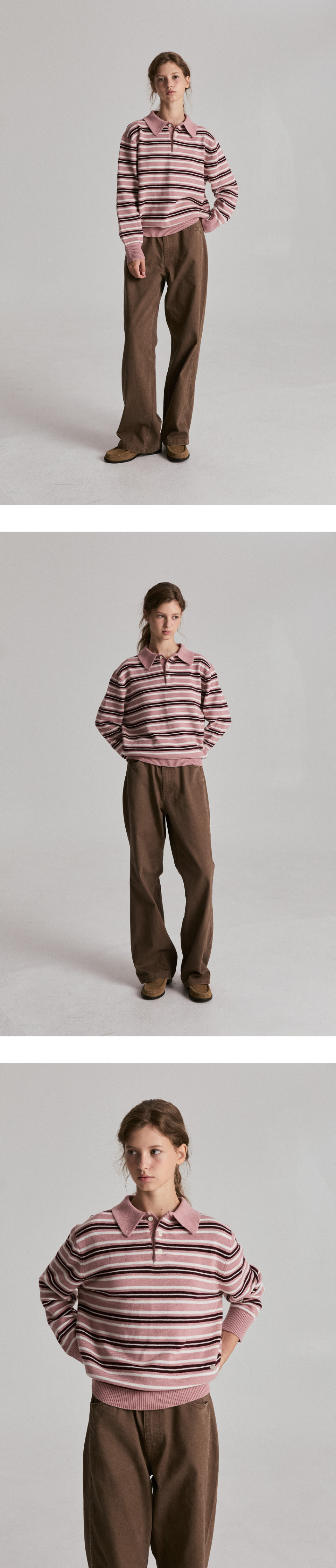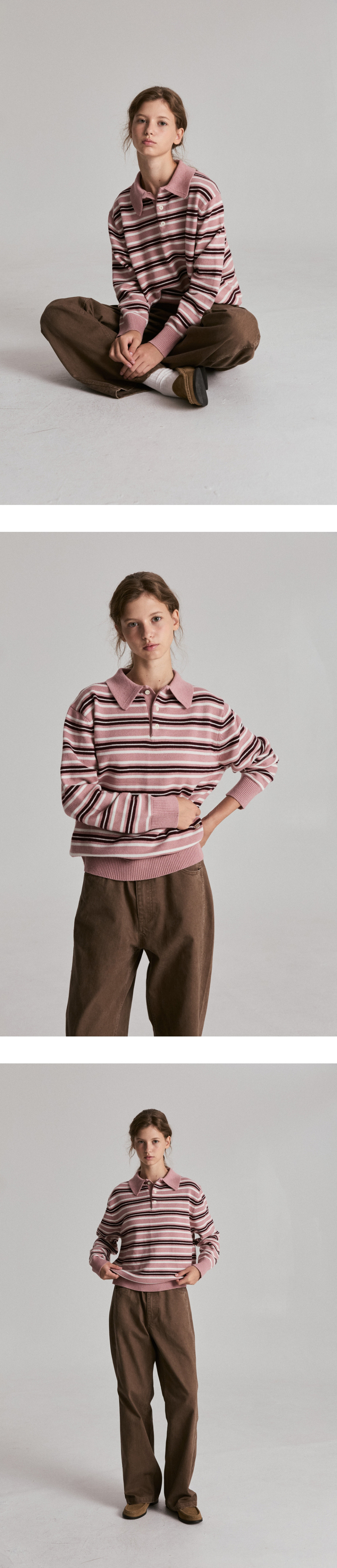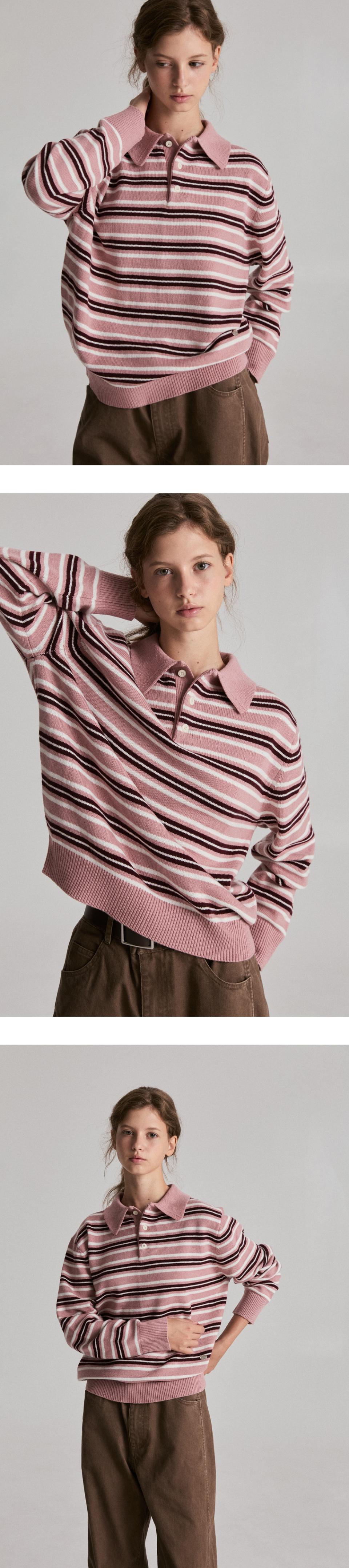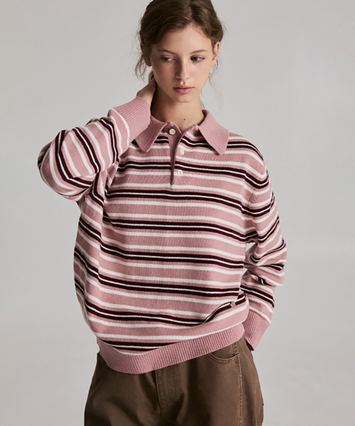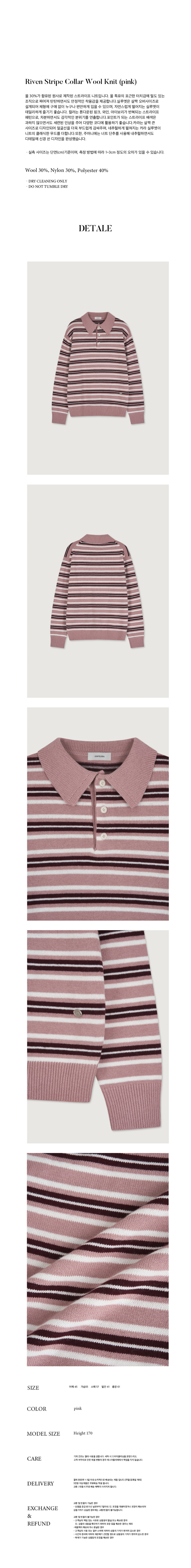리븐 스트라이프 칼라 울 니트 (핑크)